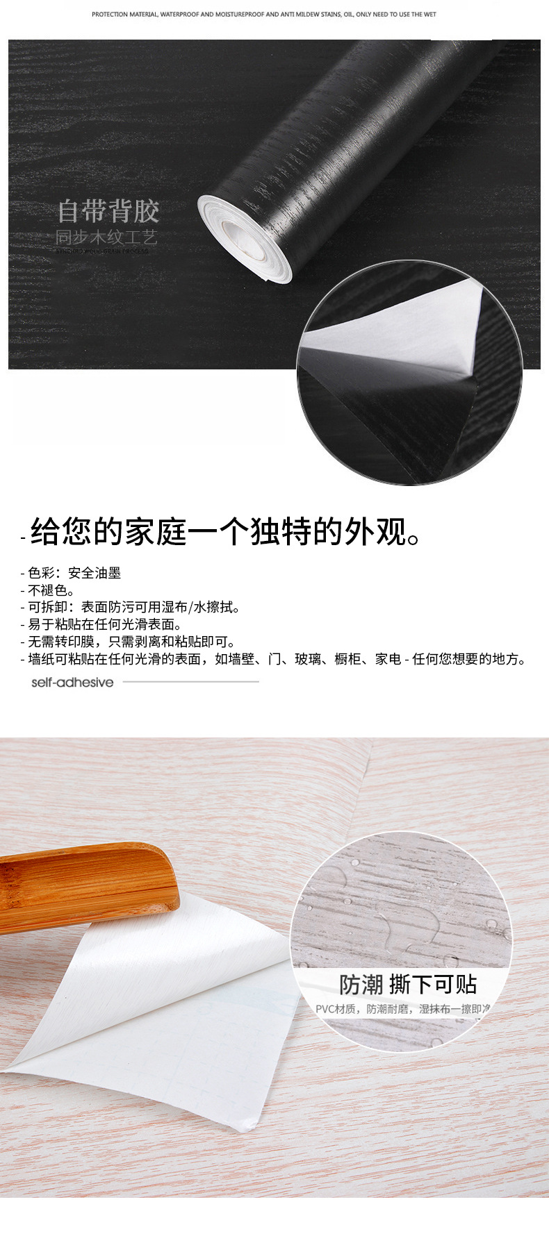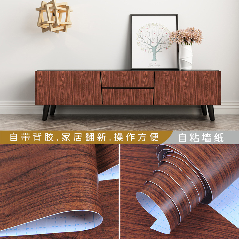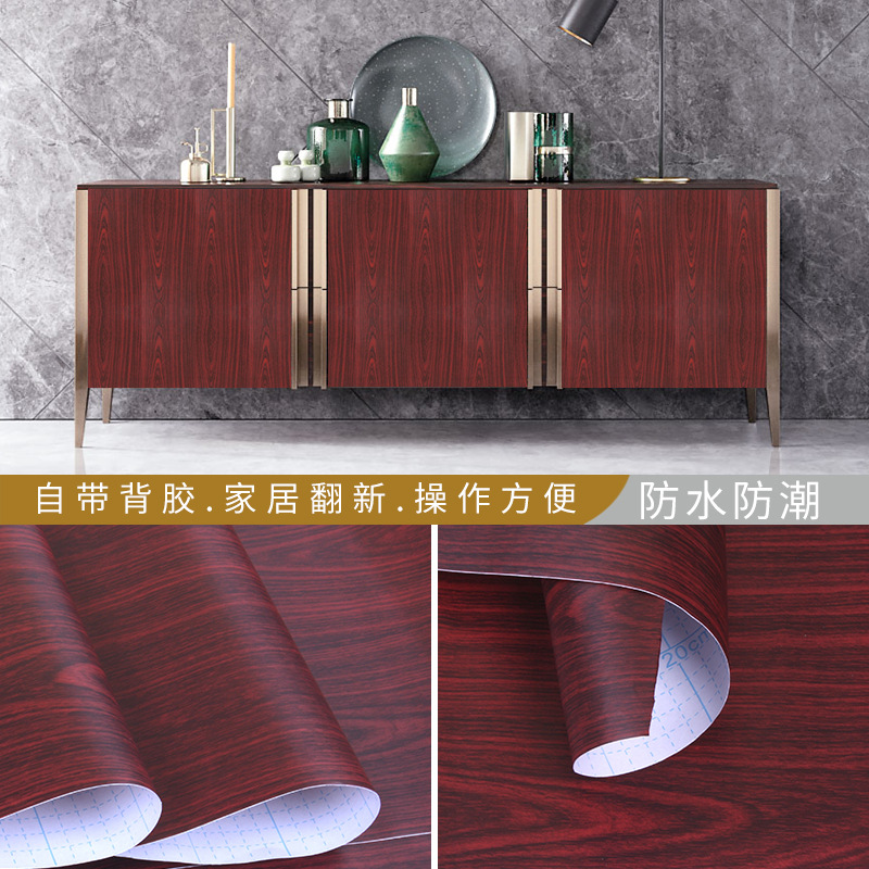 cross-border foreign trade wood stickers mahogany texture wallpaper self-adhesive furniture cabinet wardrobe sticky notes refurbished stickers desktop self-adhesive