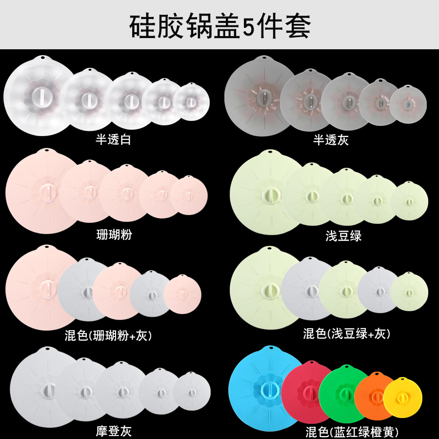 Name: 5-piece Silicone Overflow-Proof Lid for Microwave Oven, Bowl Lid, Silicone Food Storage Cover