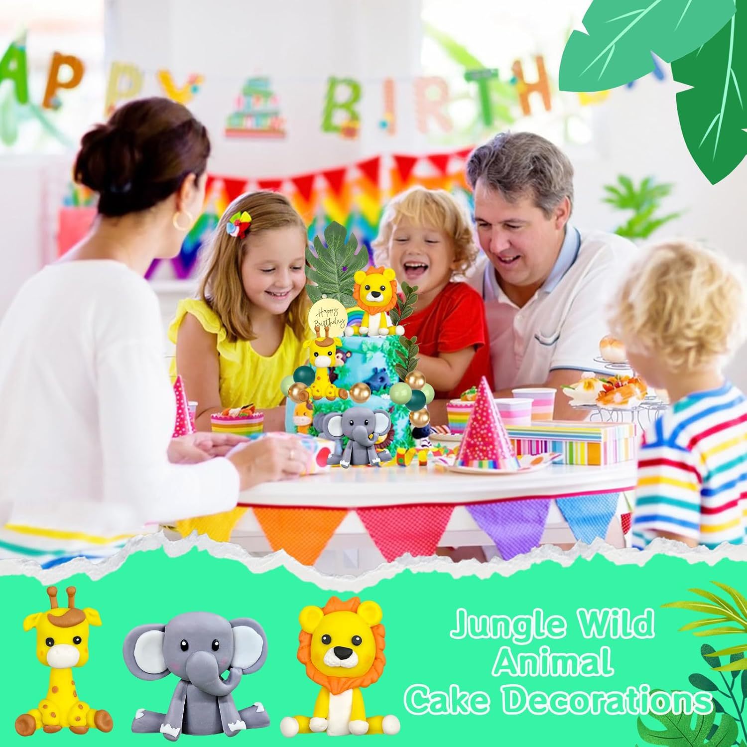 25 pieces jungle wildlife cake mold decoration lion giraffe elephant paper cup cake mold green ball palm leaf