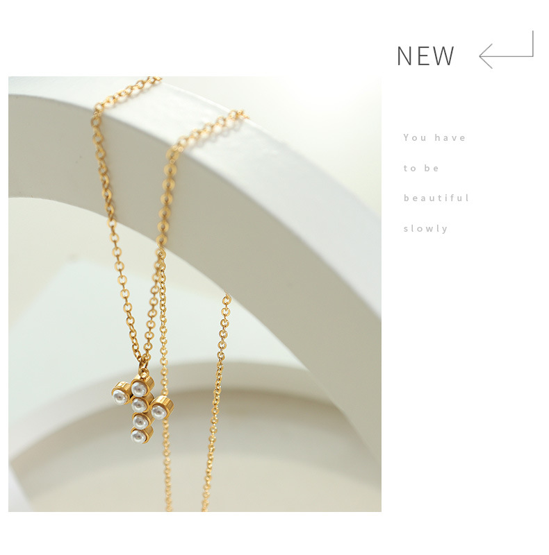 aranan jewelry necklace imitation pearl versatile french niche clavicle cross light luxury imitation pearl design
