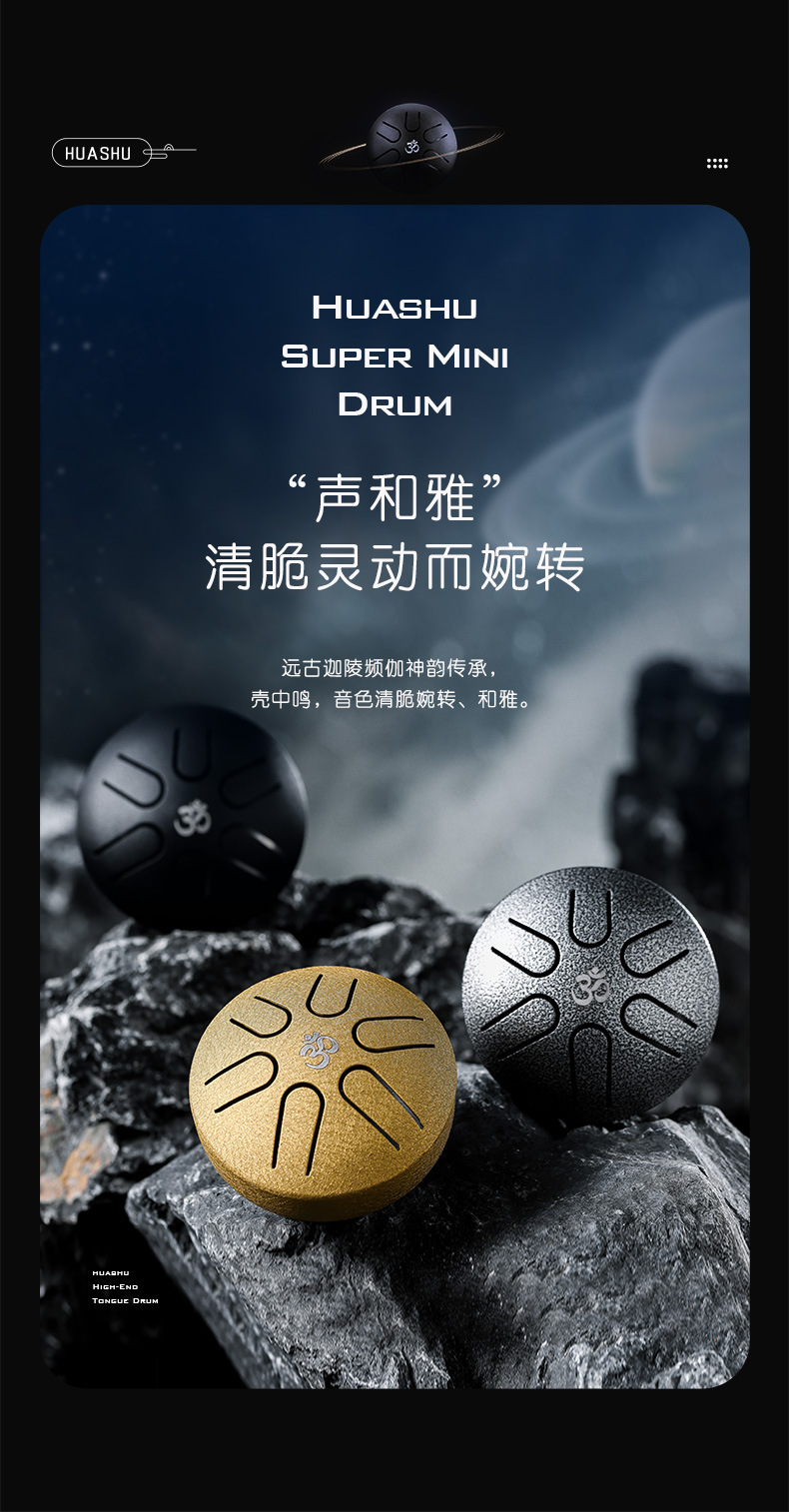 (no logo) mini drum 6 tone 3-inch ink black + full set of accessories