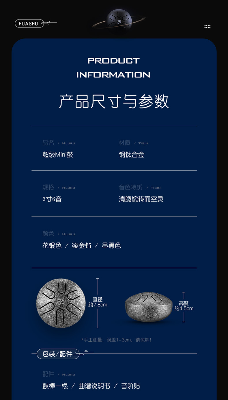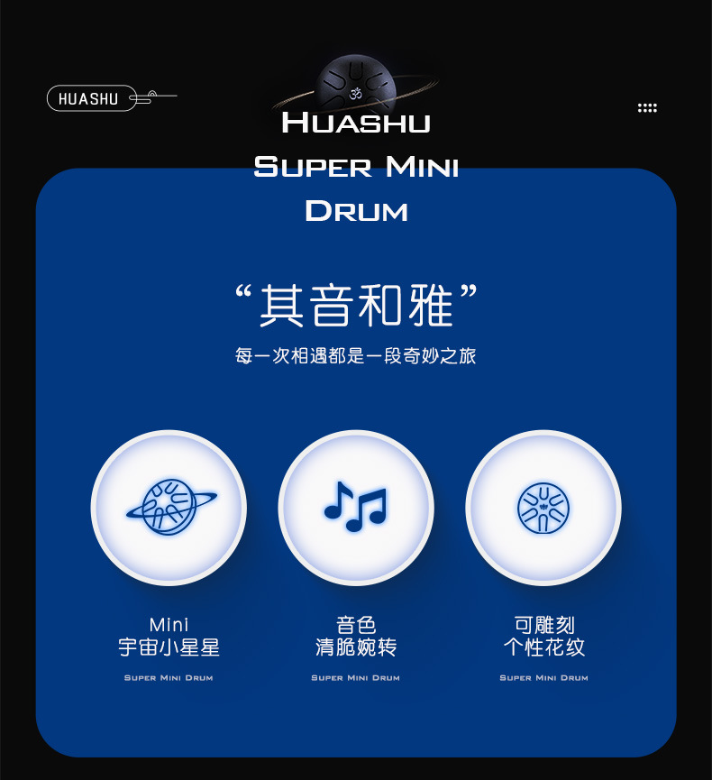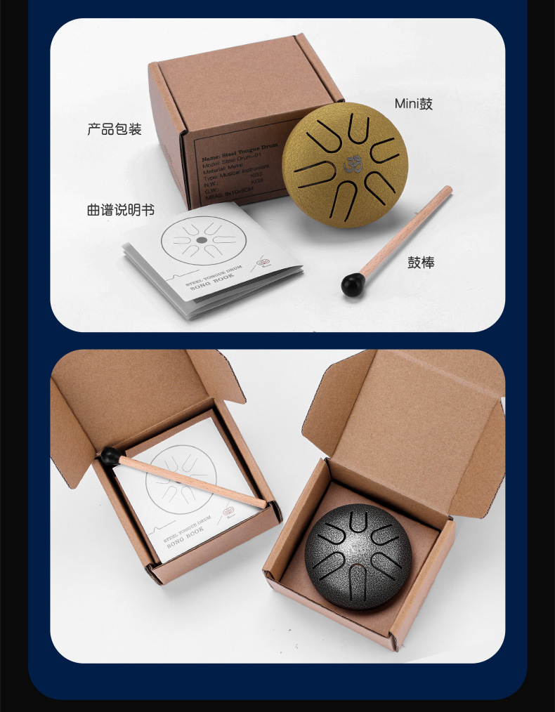 (no logo) mini drum 6 tone 3-inch navy blue + full set of accessories