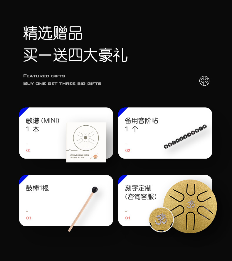 (logo) mini drum 6 tone 3-inch gilding diamond + full set of accessories