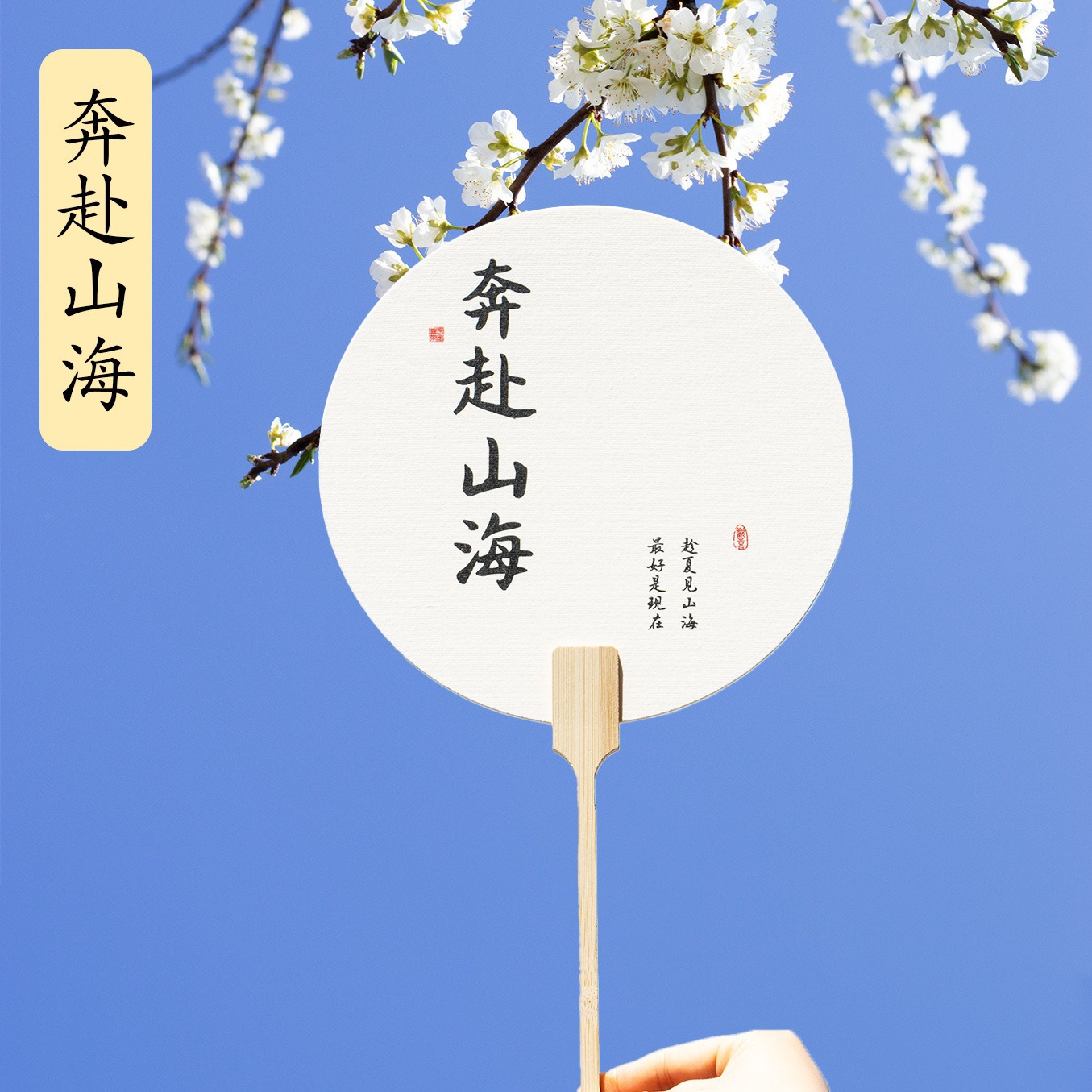 [going to the mountains and seas] text paint fan