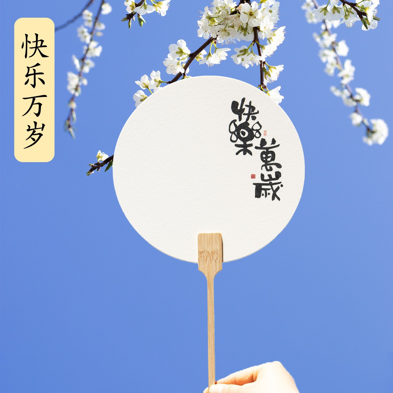 [long live happy] text paint fan