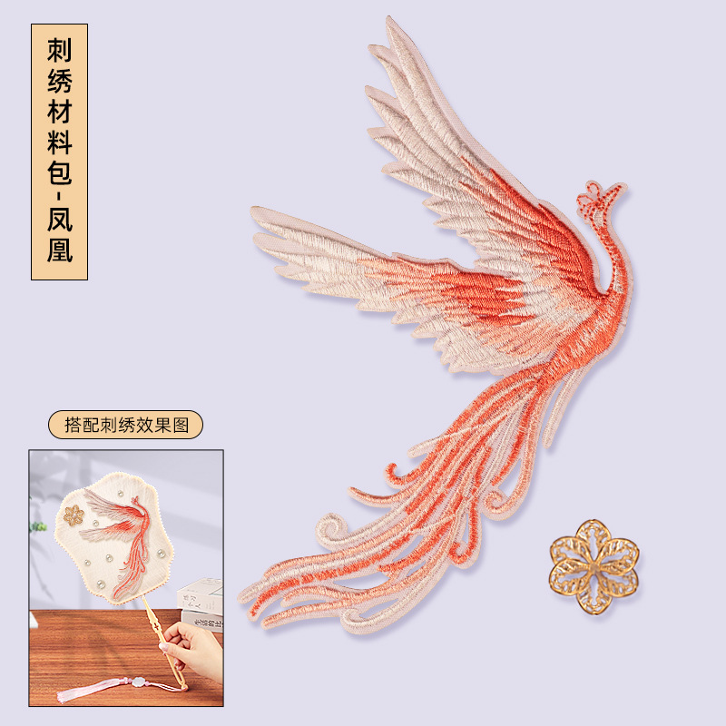 without cocoon-petal fan frame material package + phoenix embroidery stickers