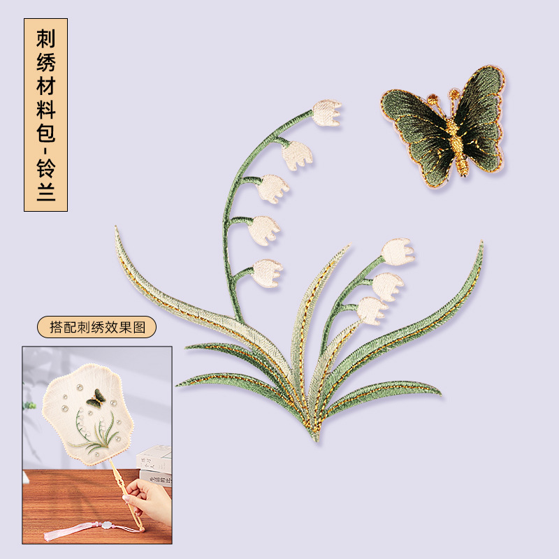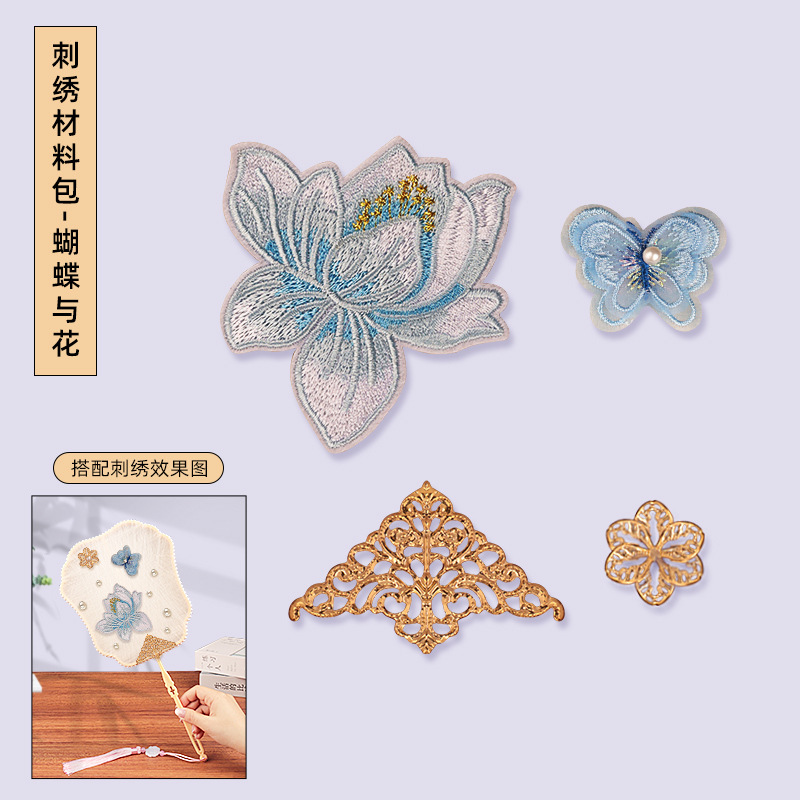 without cocoon-petal fan frame material package + butterfly and flower embroidery patch