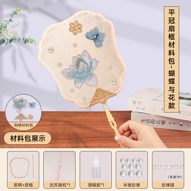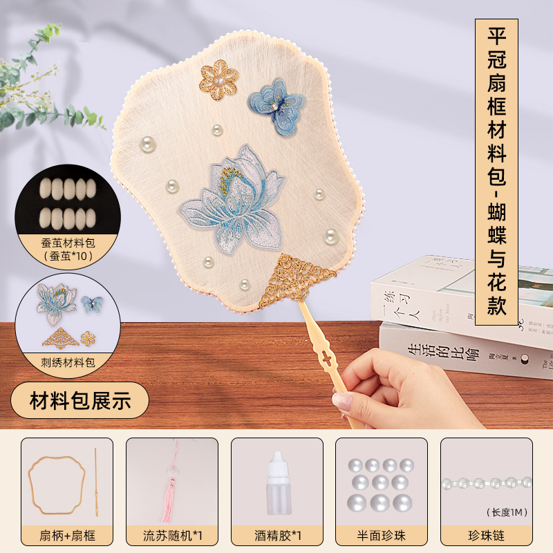 flat crown fan frame material package + butterfly and flower embroidery patch + white cocoon 10