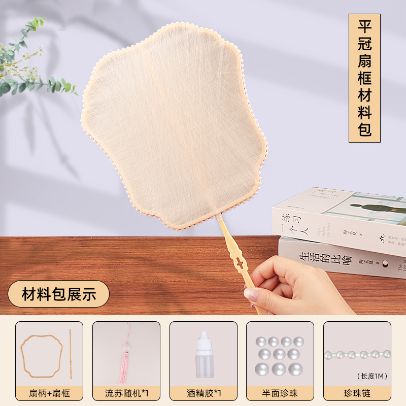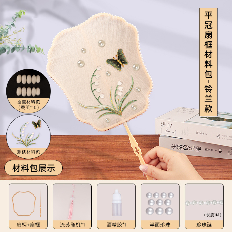 flat crown fan frame material package + linglan embroidery patch +10 white silkworm cocoons