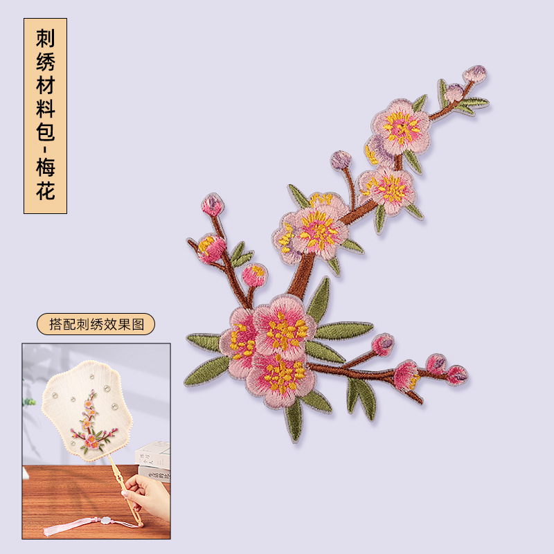 without cocoon-petal fan frame material package + plum blossom embroidery patch
