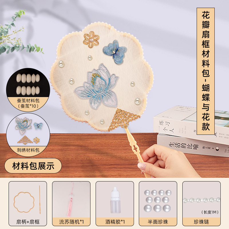 petal fan frame material package + butterfly and flower embroidery patch + white cocoon 10