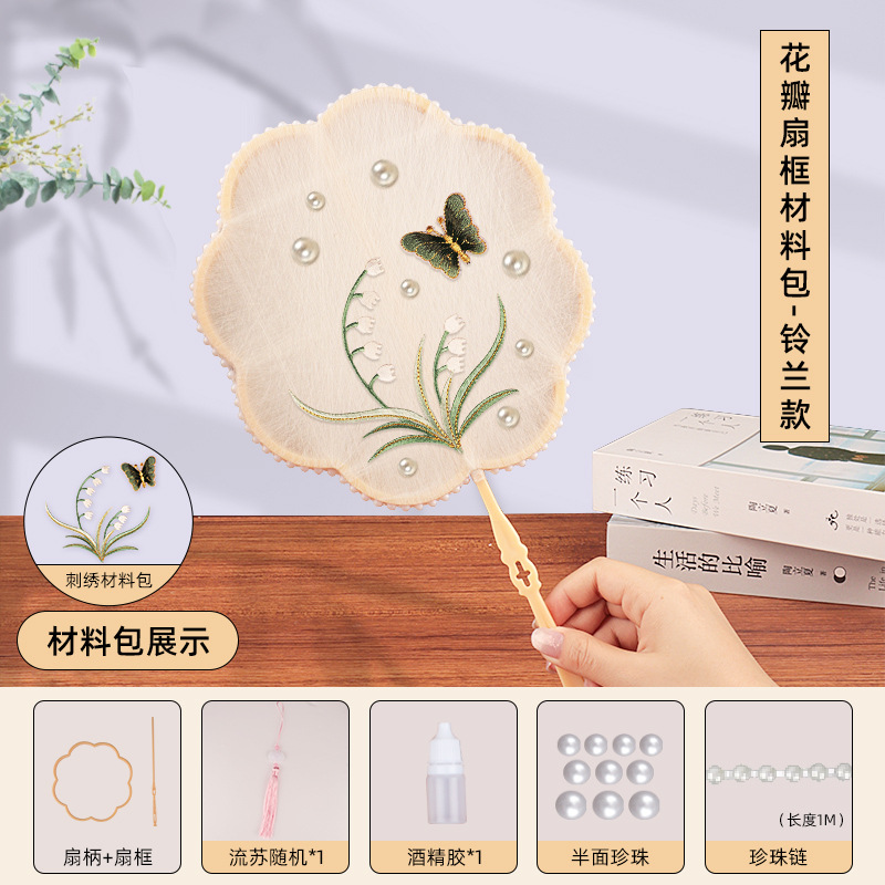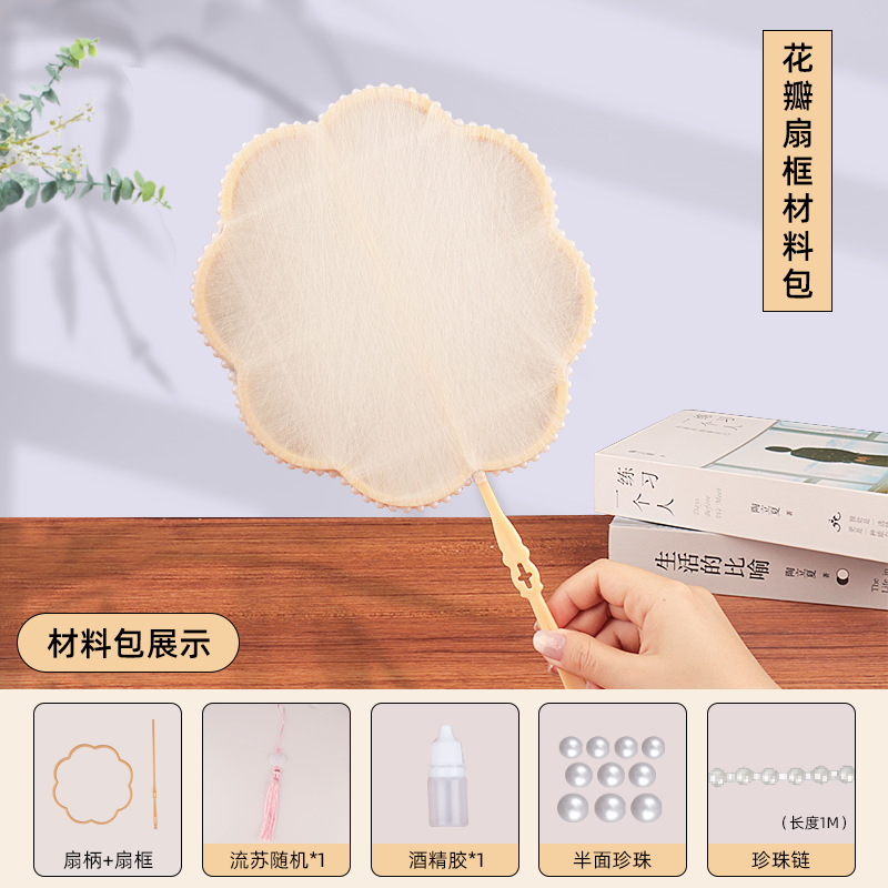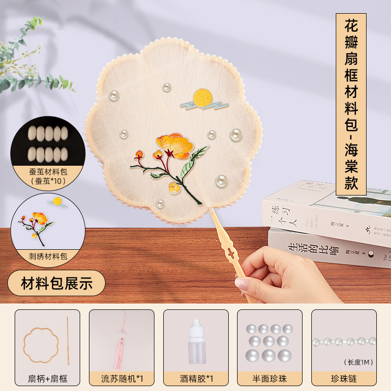 petal fan frame material package + linglan embroidery patch +10 white silkworm cocoons