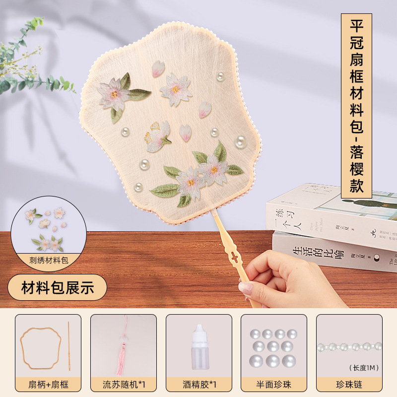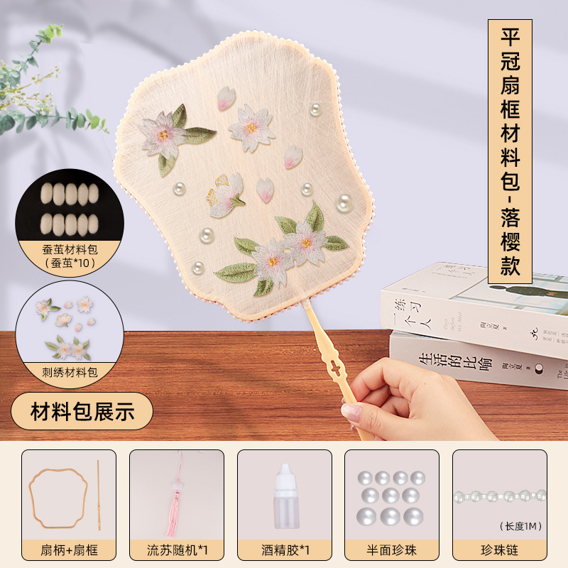 flat crown fan frame material package + falling cherry embroidery patch + white cocoon 10