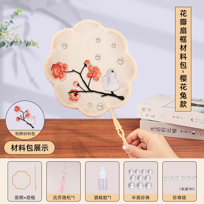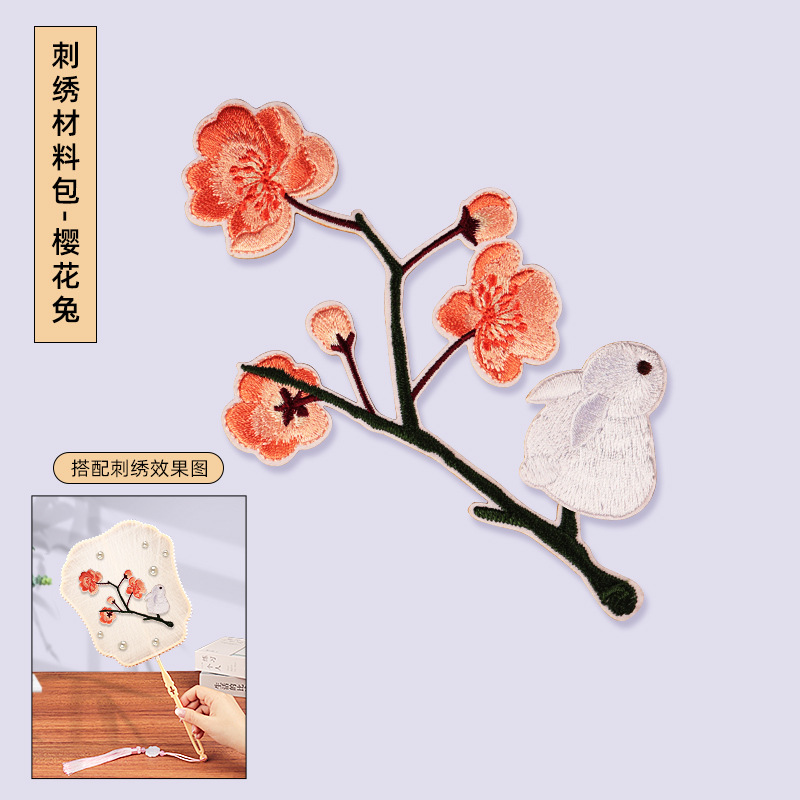 without cocoon-petal fan frame material package + cherry blossom rabbit embroidery patch