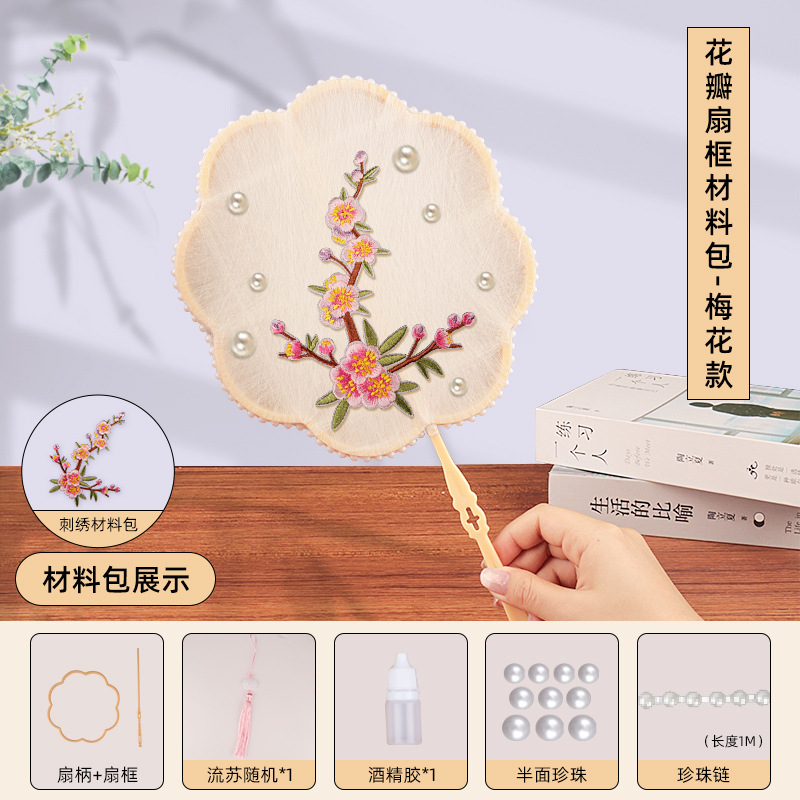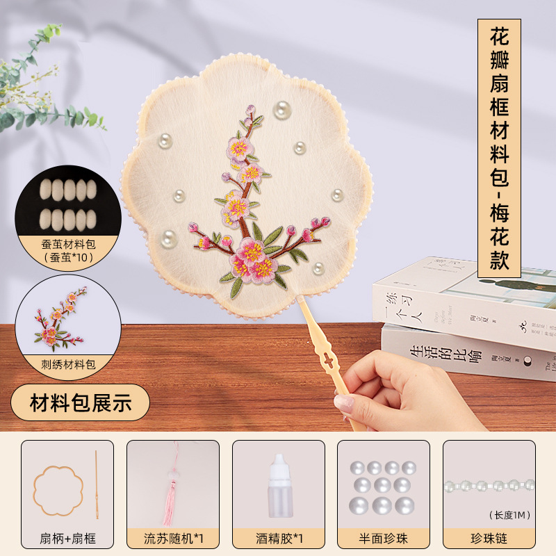 petal fan frame material package + plum blossom embroidery patch + white cocoon 10