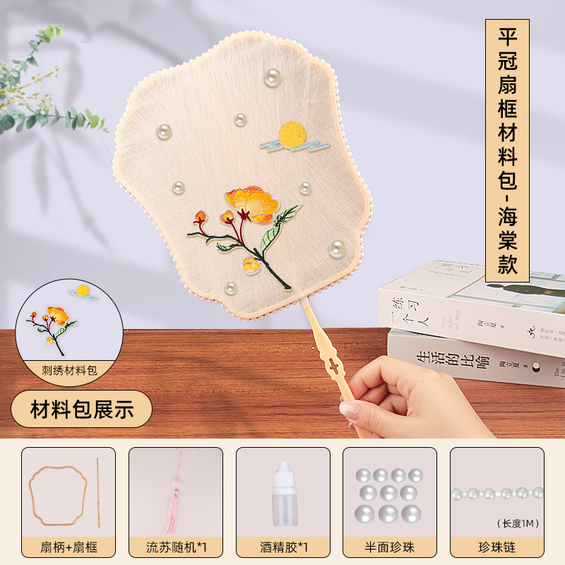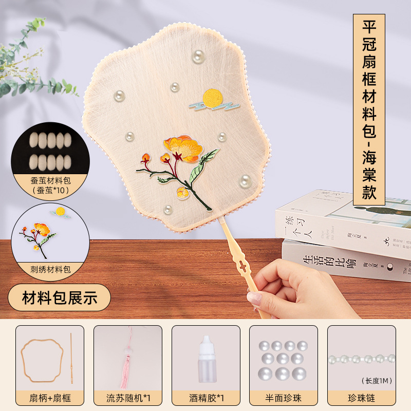 flat crown fan frame material package + begonia embroidery patch +10 white silkworm cocoons