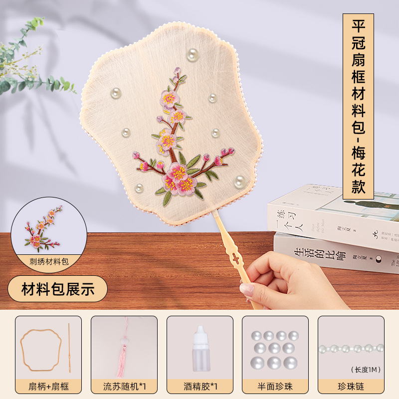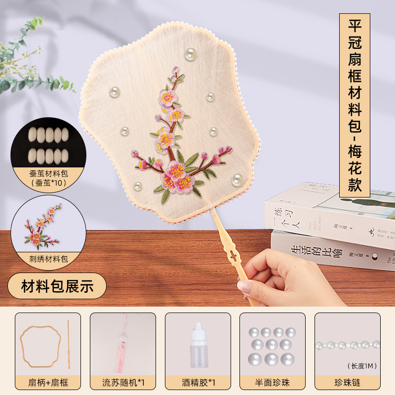 flat crown fan frame material package + plum blossom embroidery patch + white cocoon 10