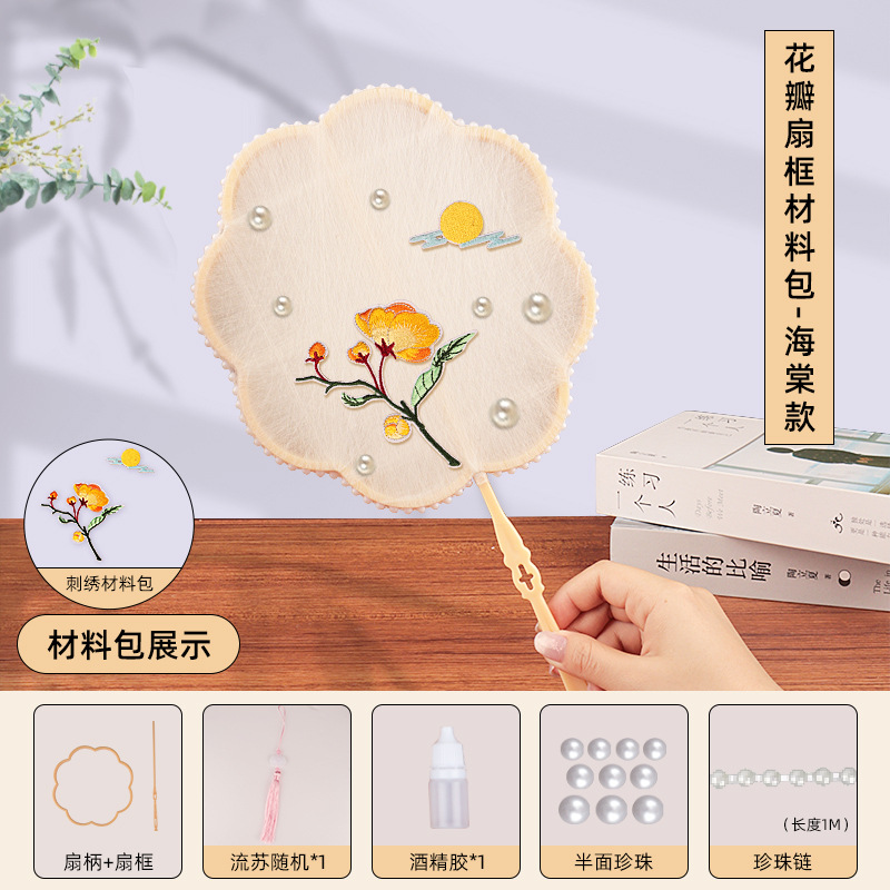 petal fan frame material package + begonia embroidery patch + white cocoon 10