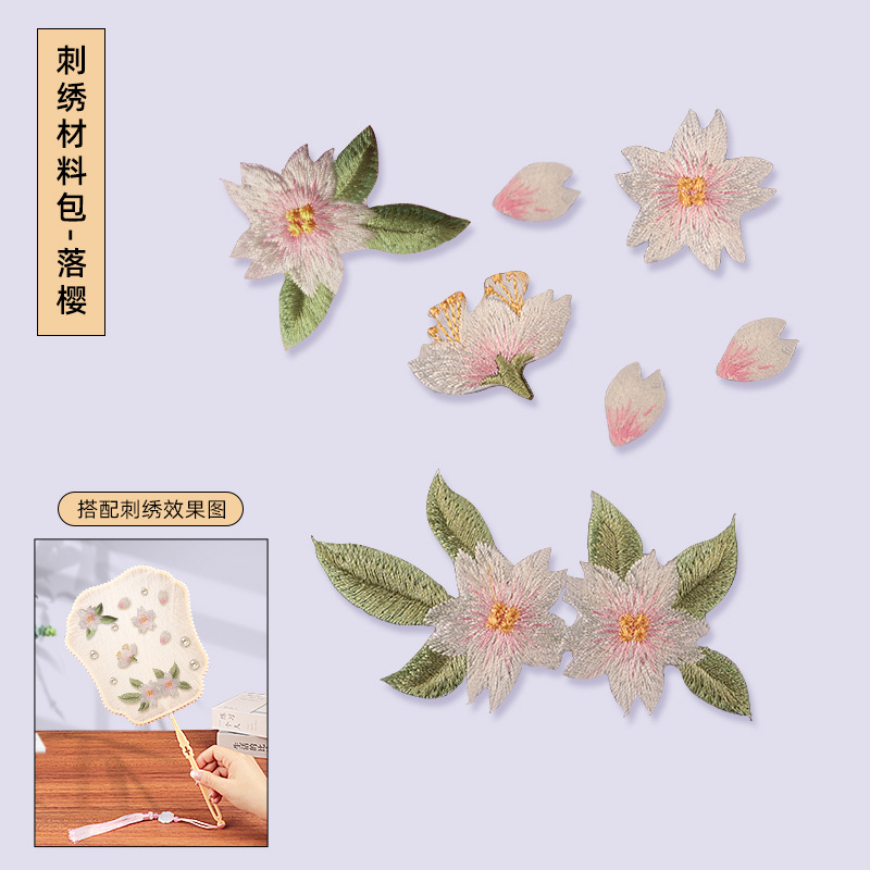 without cocoon-petal fan frame material package + falling cherry embroidery patch