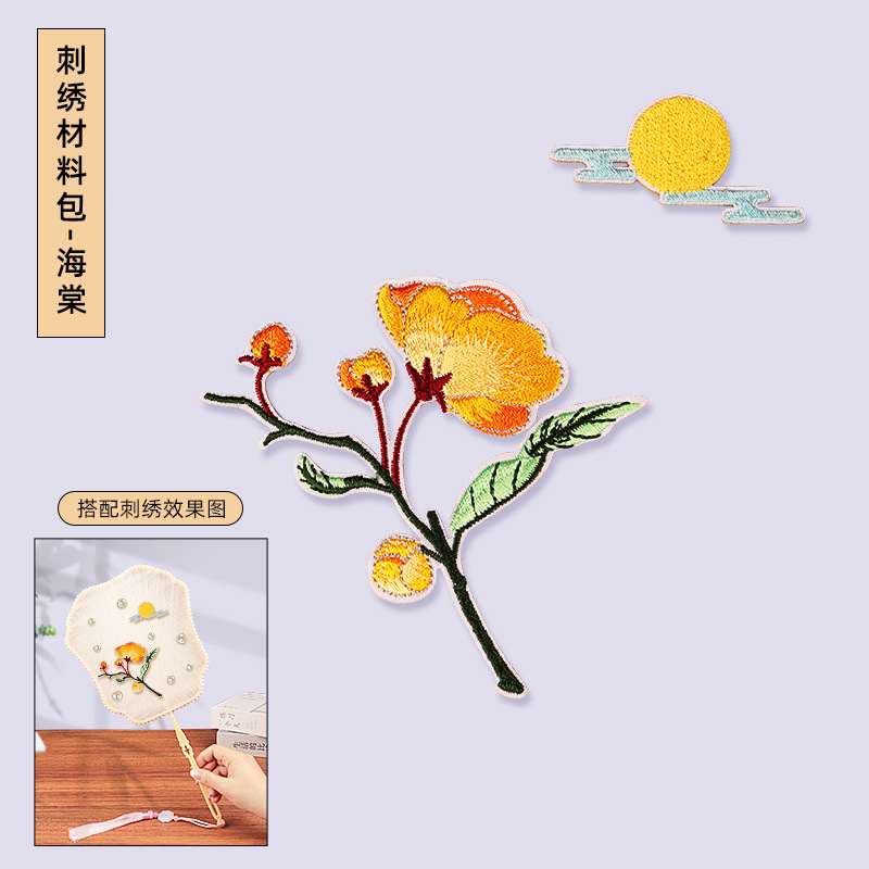 silk fan embroidery patch material package-begonia