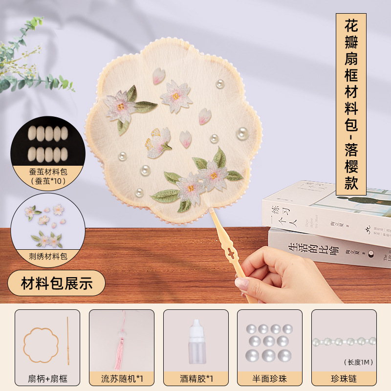 petal fan frame material package + falling cherry embroidery patch + white cocoon 10