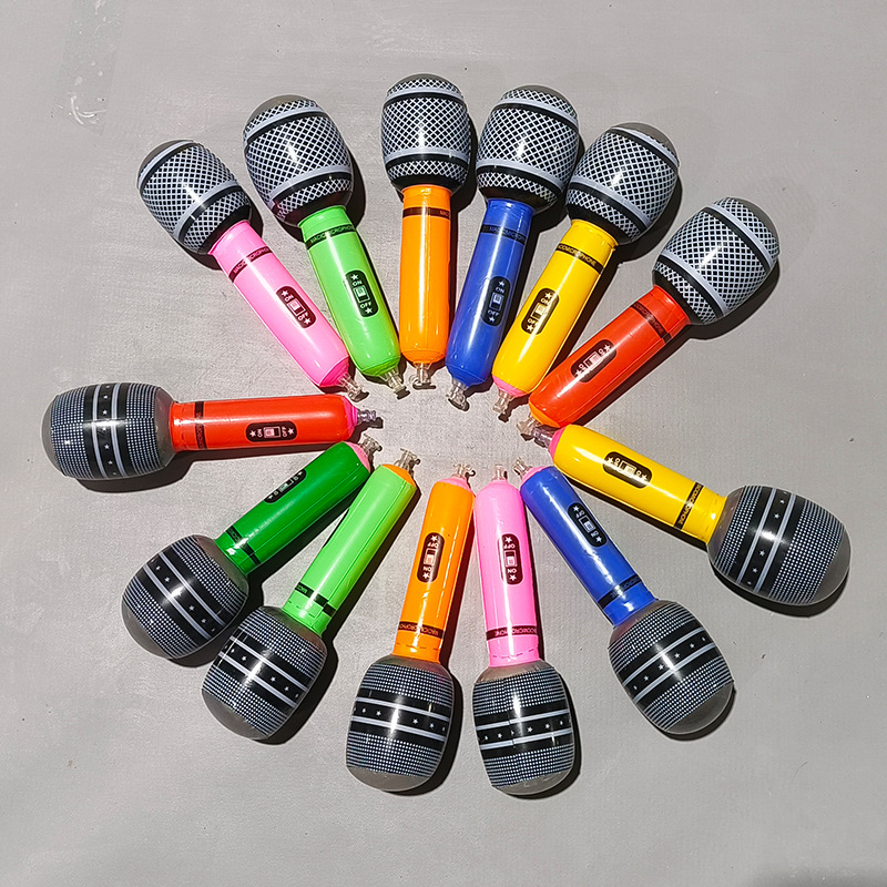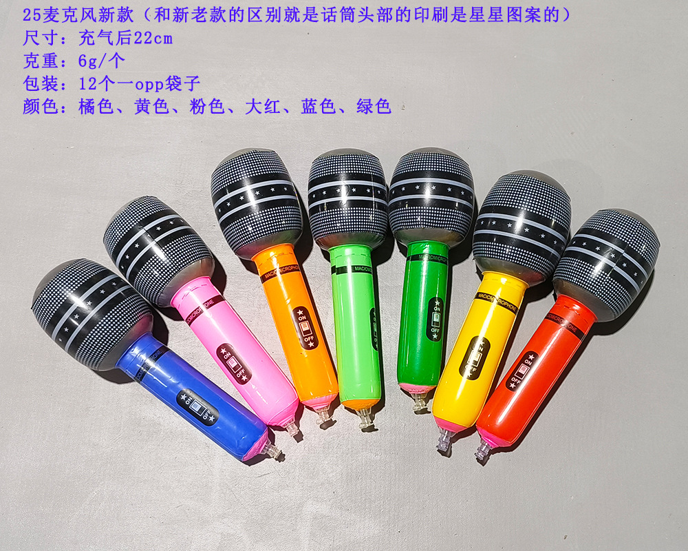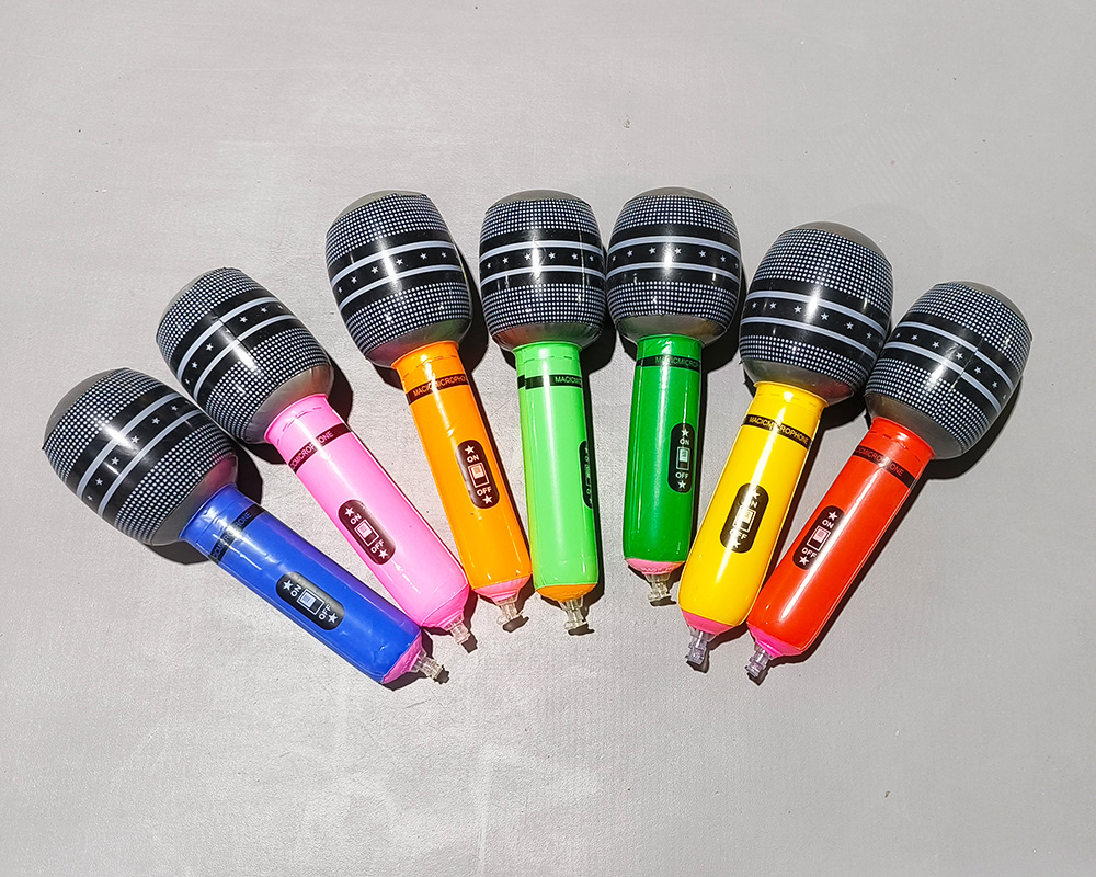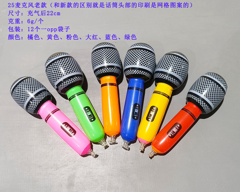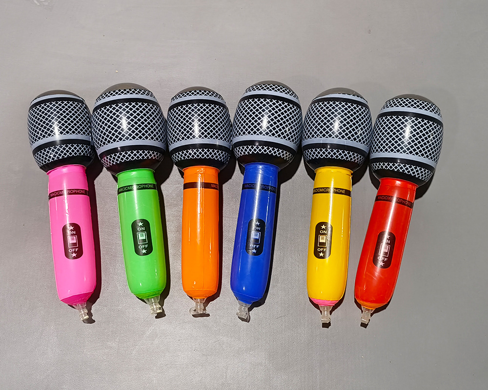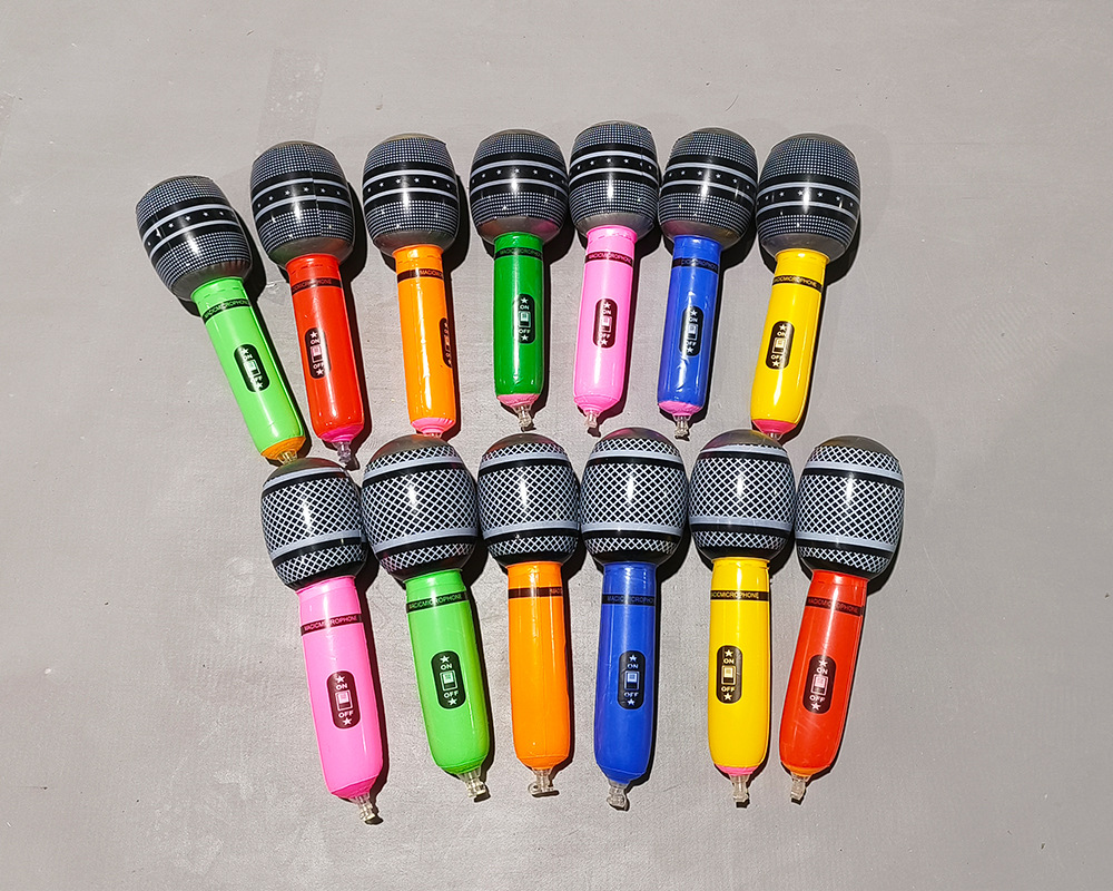We offer three sizes of inflatable microphones: 24cm, 35cm, and 80cm. There are over six colors available. The saxophones in sizes 24cm and 35cm come in a pack of 12, with a mixed color arrangement. The saxophones in size 80cm are individually packaged in an opp bag.