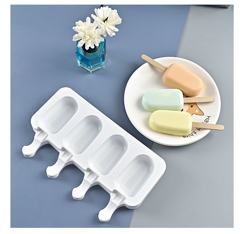 food grade 3-piece silicone ice cream mold kitchen ice cream ice maker mung bean oval popsicle menglong ice cream mold