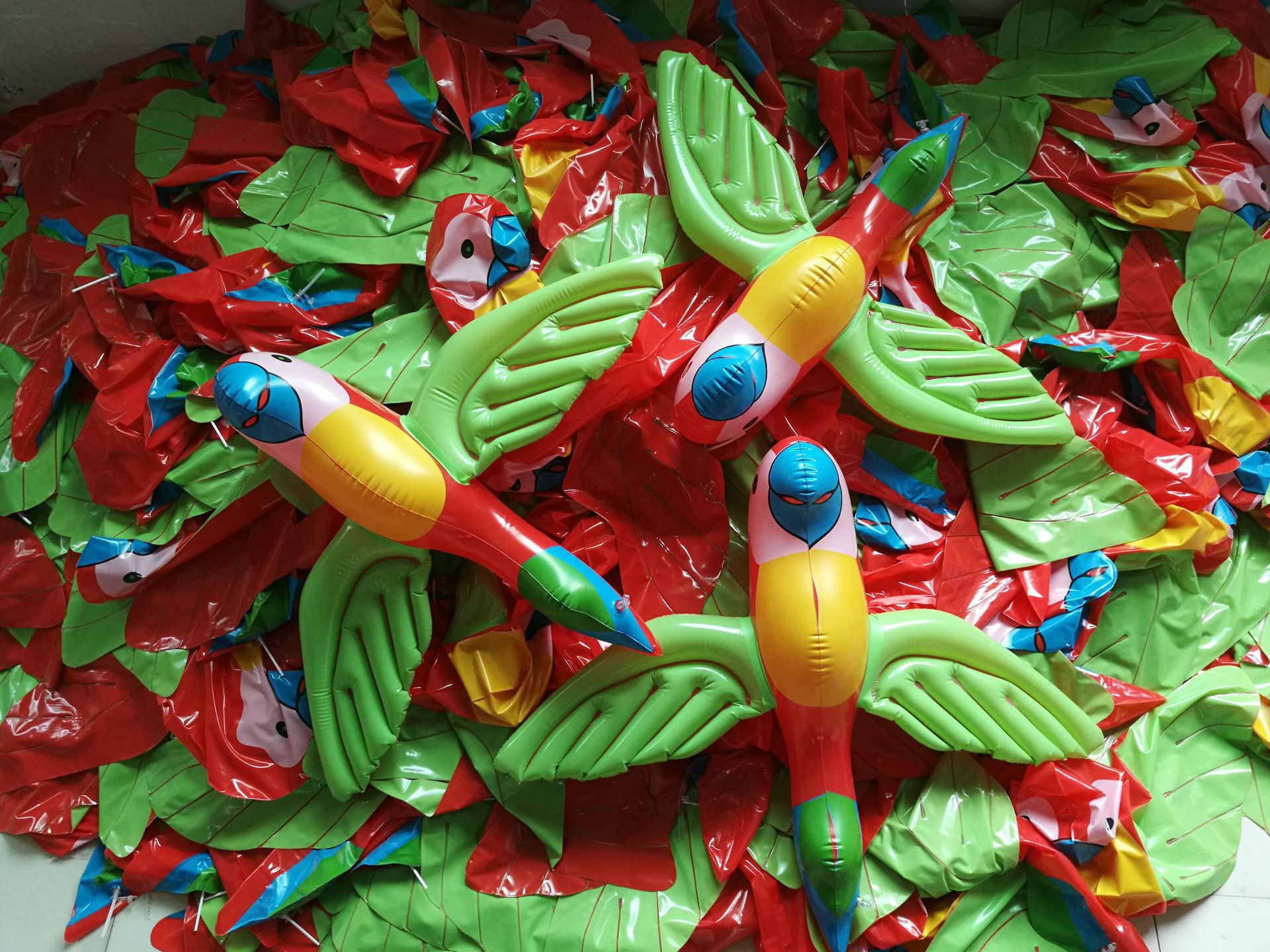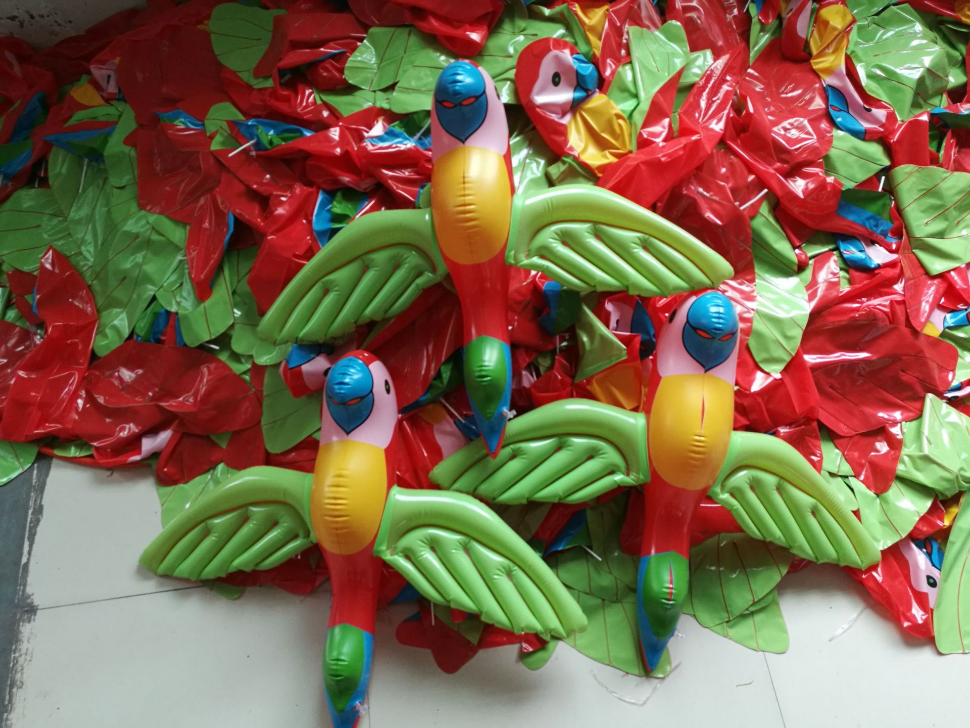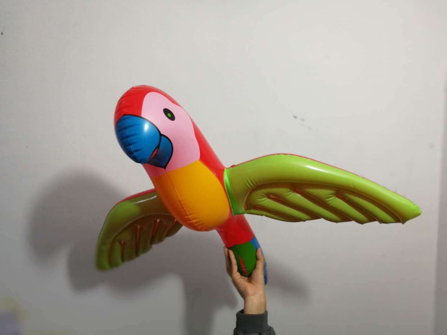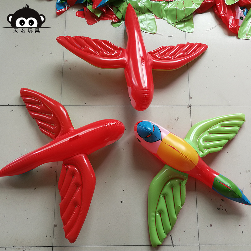 PVC inflatable parrot We have this product made from eco-friendly materials, and it is in stock for a long time. It is supplied to foreign trade customers for sales. The material is 16 strands, and the length is 67 cm.