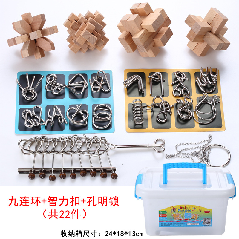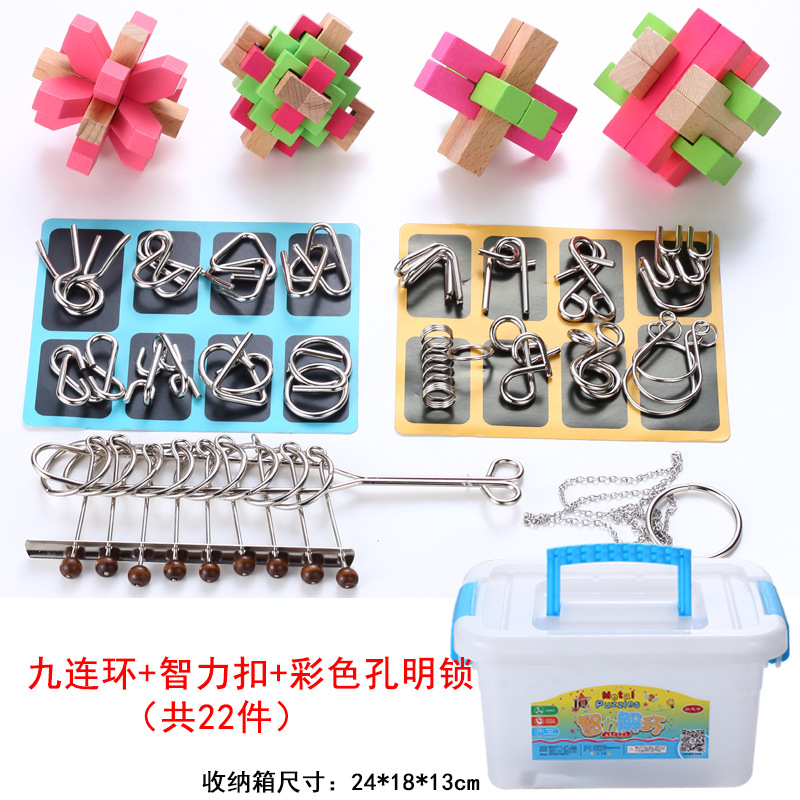 chinese string puzzle + intelligence knot + primary color burr puzzle 22-piece set