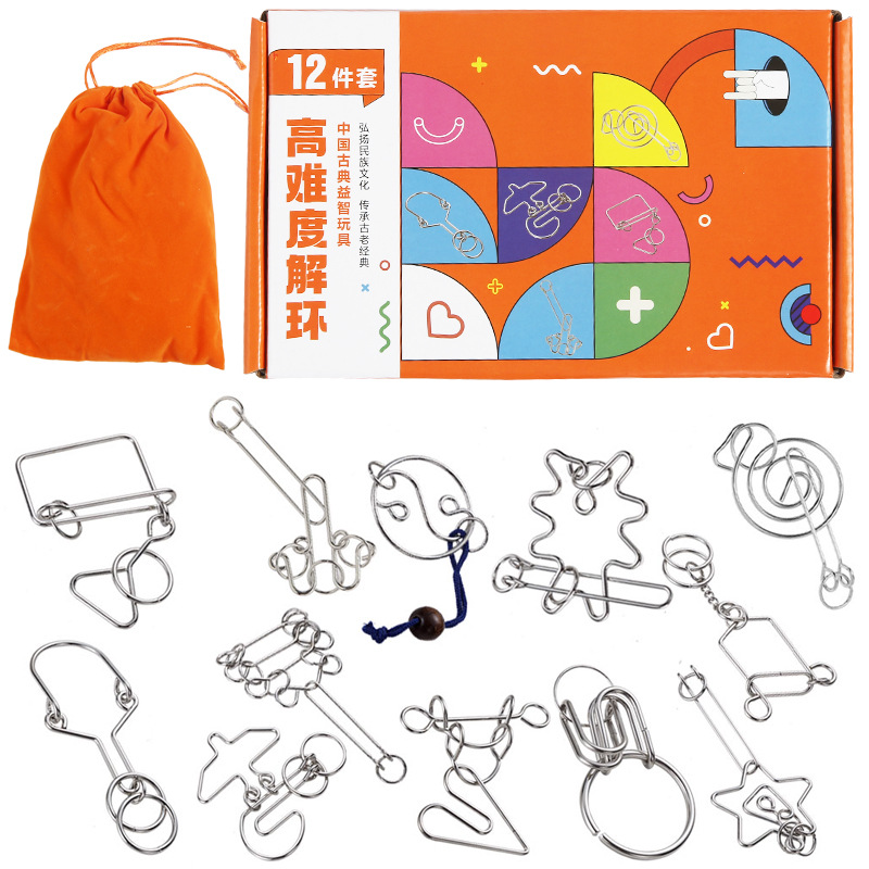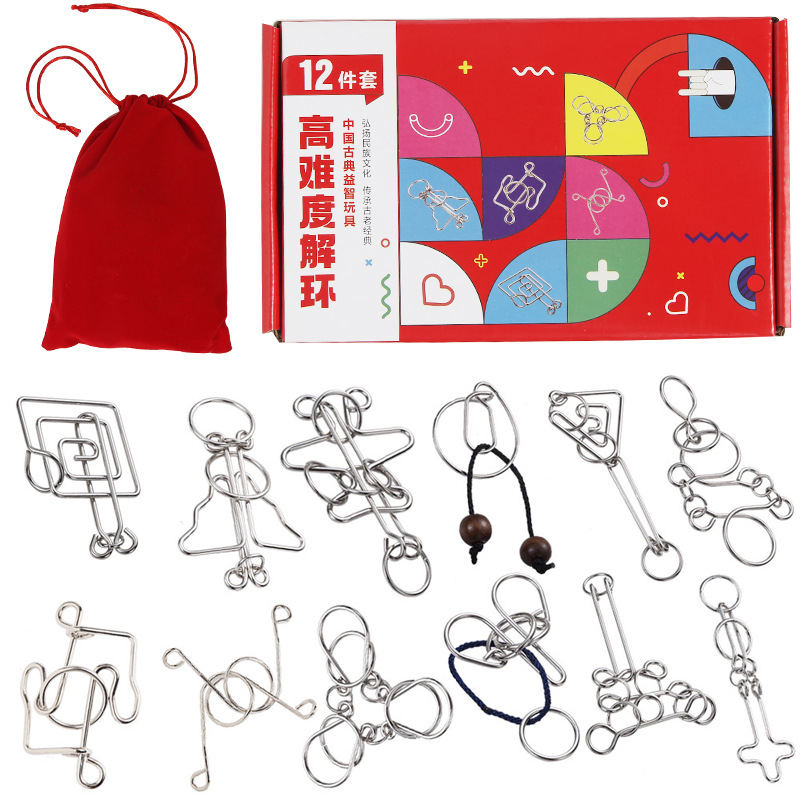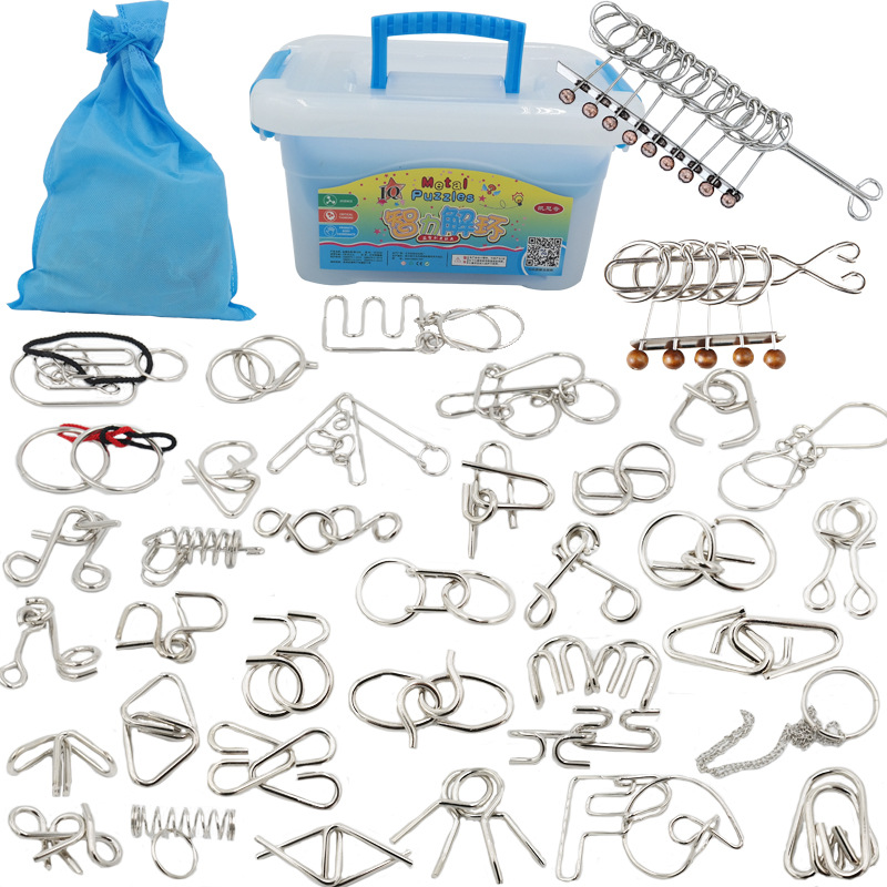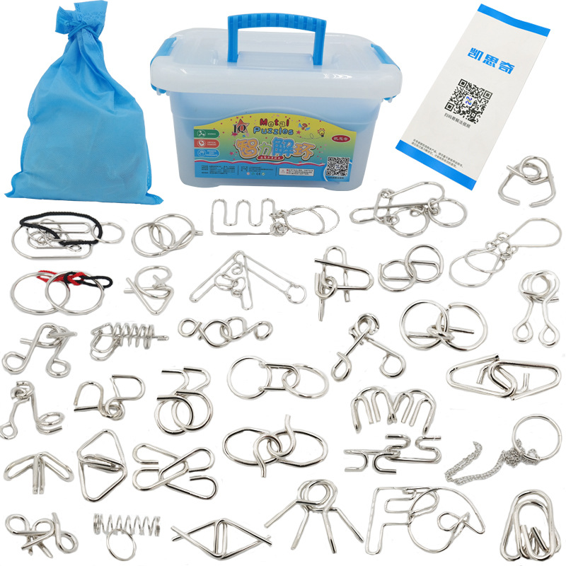 chinese string puzzle + intelligence knot + burr puzzle 41-piece set
