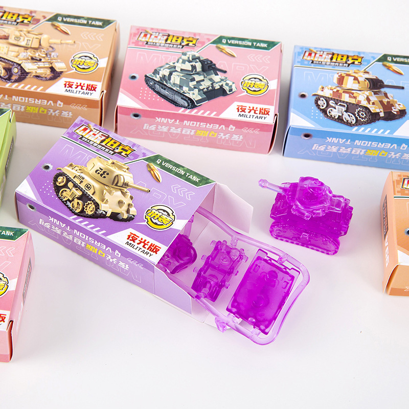 q version luminous tank assembled toy children's simulation military tank model mini pocket toy cross-border