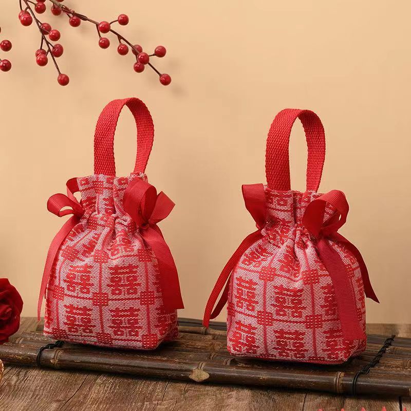 wine red double happiness cloth bag