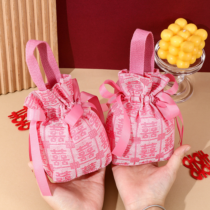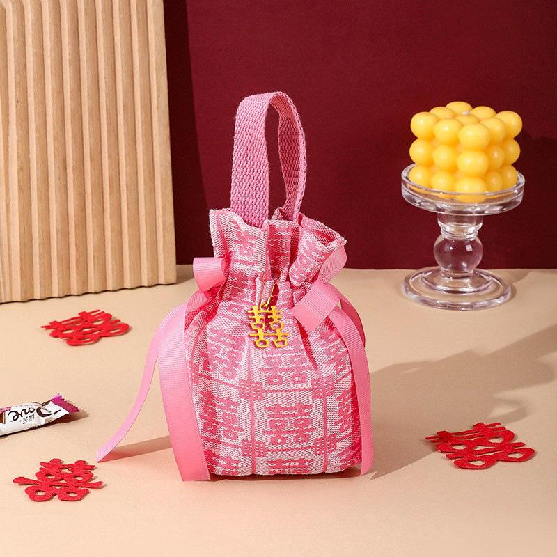pink double happiness cloth bag