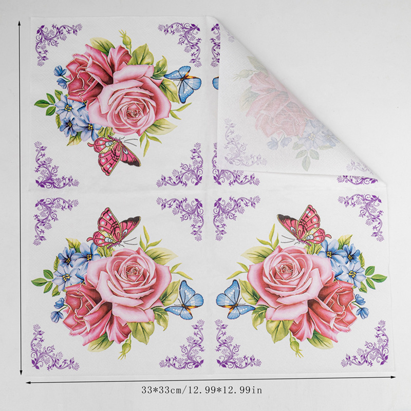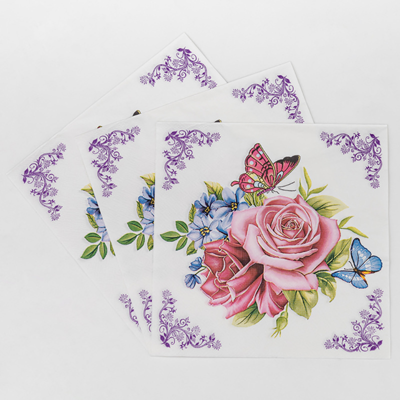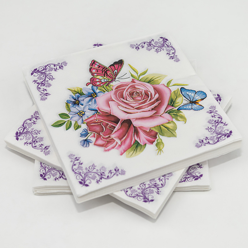 in stock western restaurant printed napkin square flowers and plants creative decorative wood pulp tissue printing tissue wholesale
