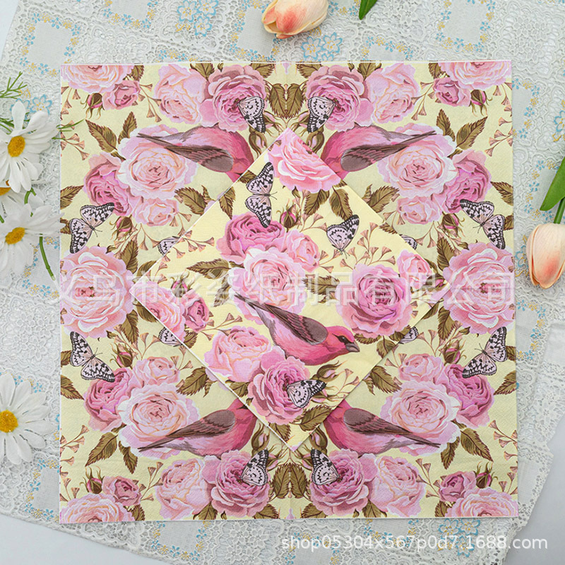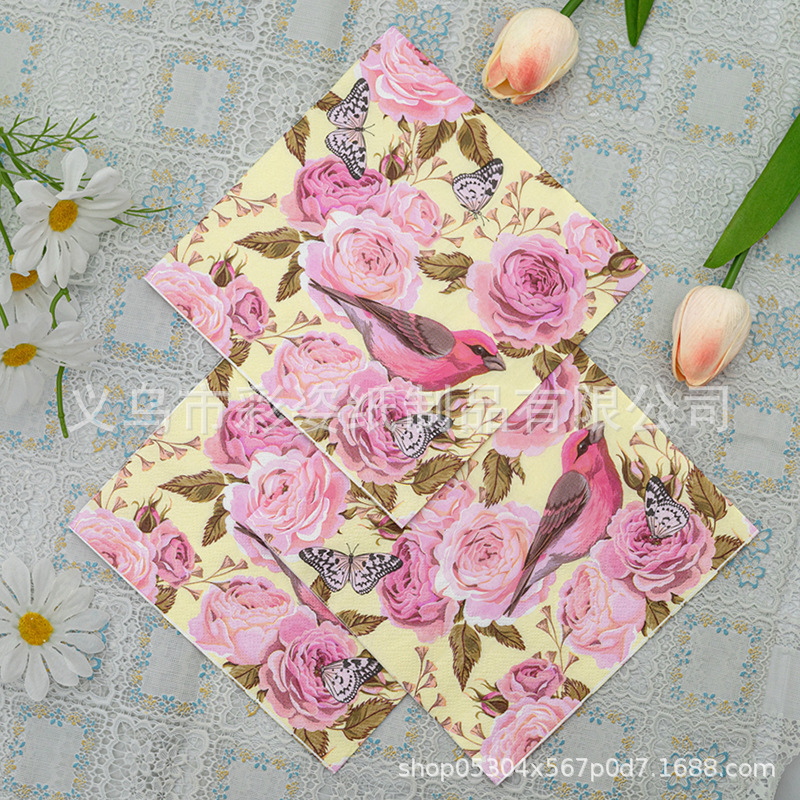 in stock cross-border pure wood pulp single-sided printing napkin factory party supplies wholesale color printing napkin