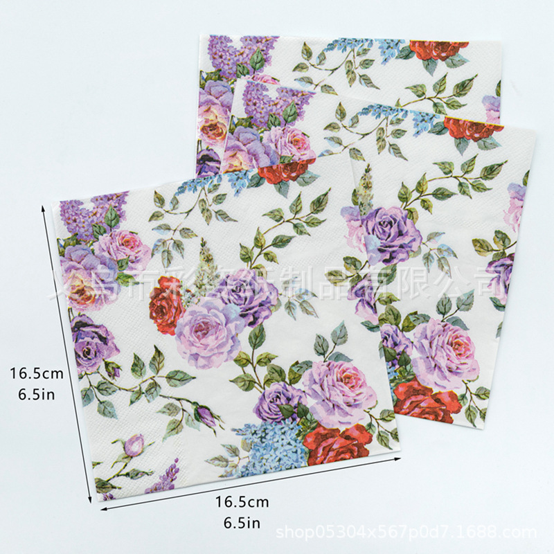 factory in stock new color flower disposable printed napkin facial tissue handkerchief tissue party wood pulp paper towel