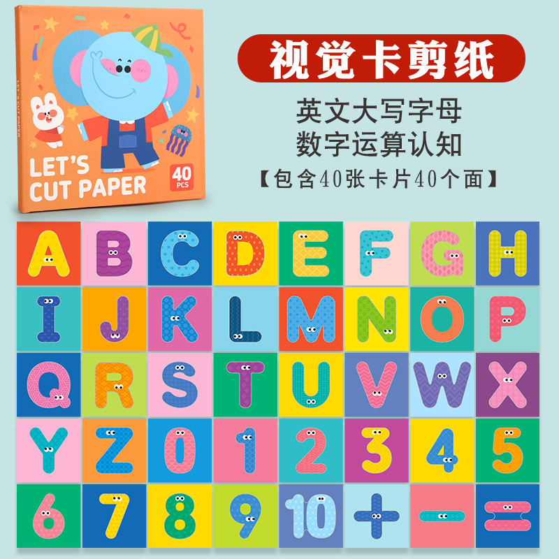 [package 7] english capital letters and numbers computing visual card paper cutting without safety scissors