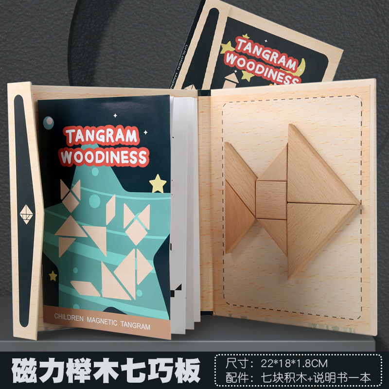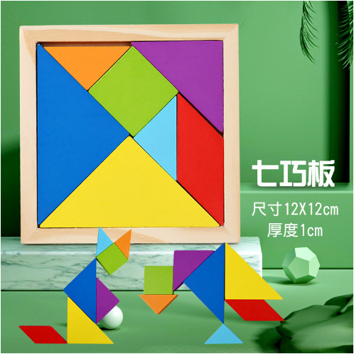 【Package 11】Wooden 7-piece puzzle in a box with thickened design, 14*14*1cm, weight 0.15kg, quantity per box 200 sets, packing size 57.5*30*27cm.
