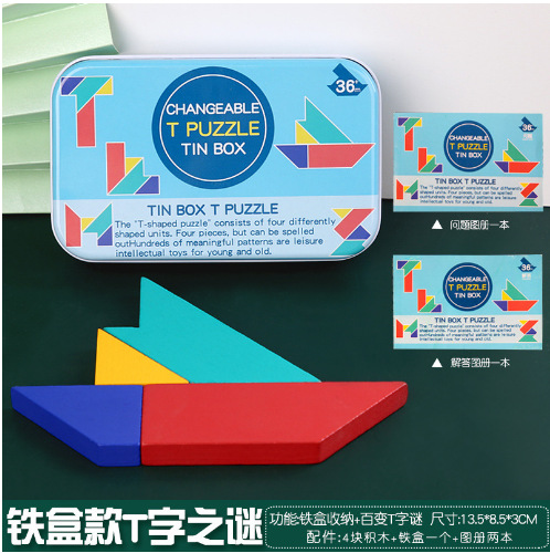 【Package 15】T-shaped Puzzle in a tin box, size 13.5*8.5*3cm, weight 0.18kg, packing quantity 120 sets, packing size: 45x28x36cm