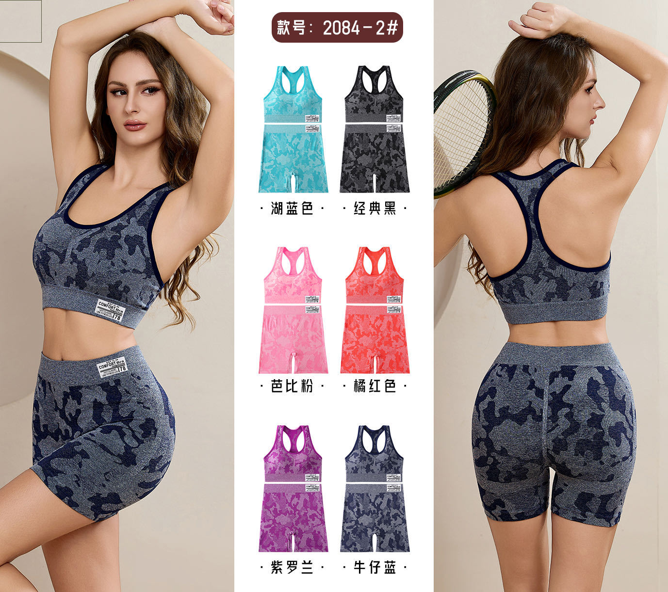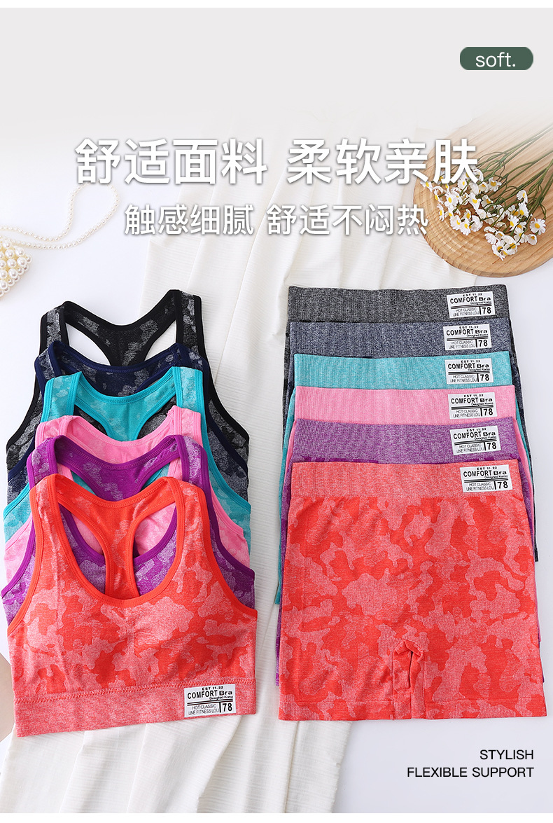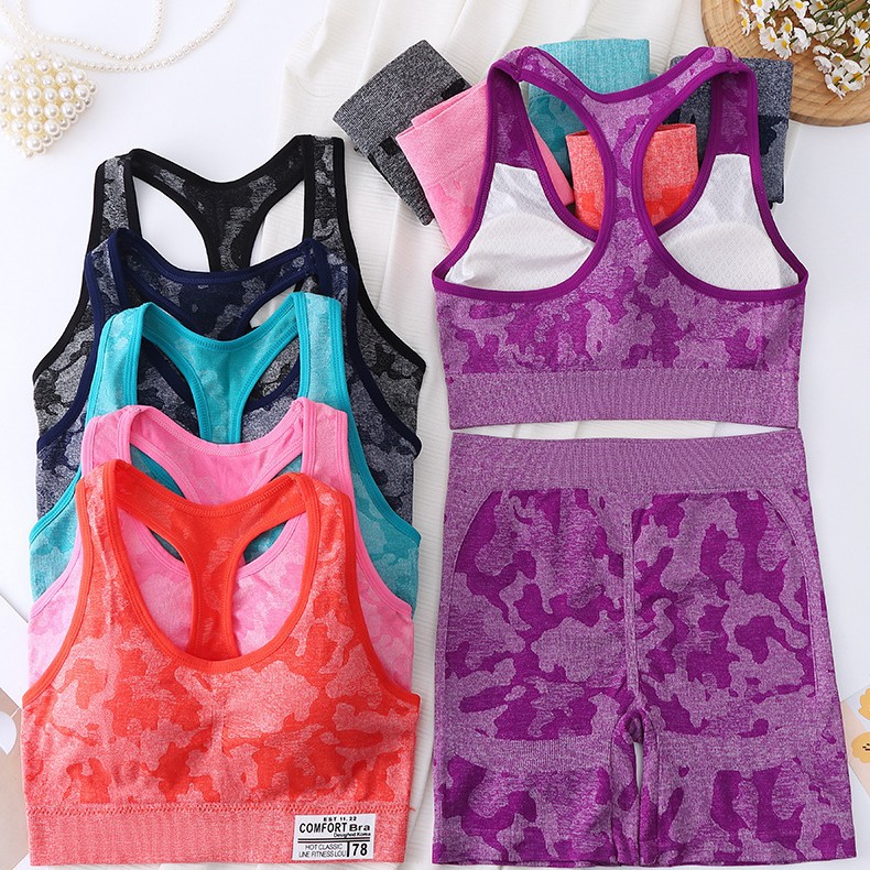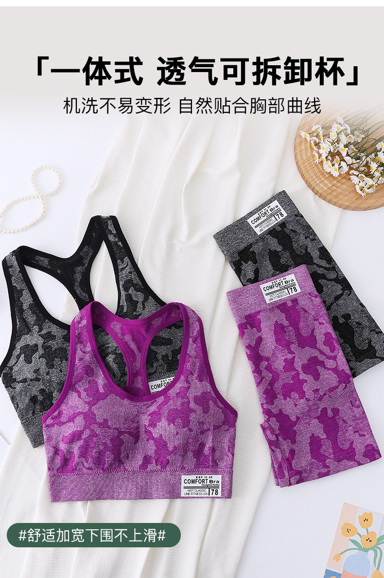 2084-2# camouflage i-shaped beautiful back underwired bra tube top breathable yoga chest wrap vest sports shockproof bra