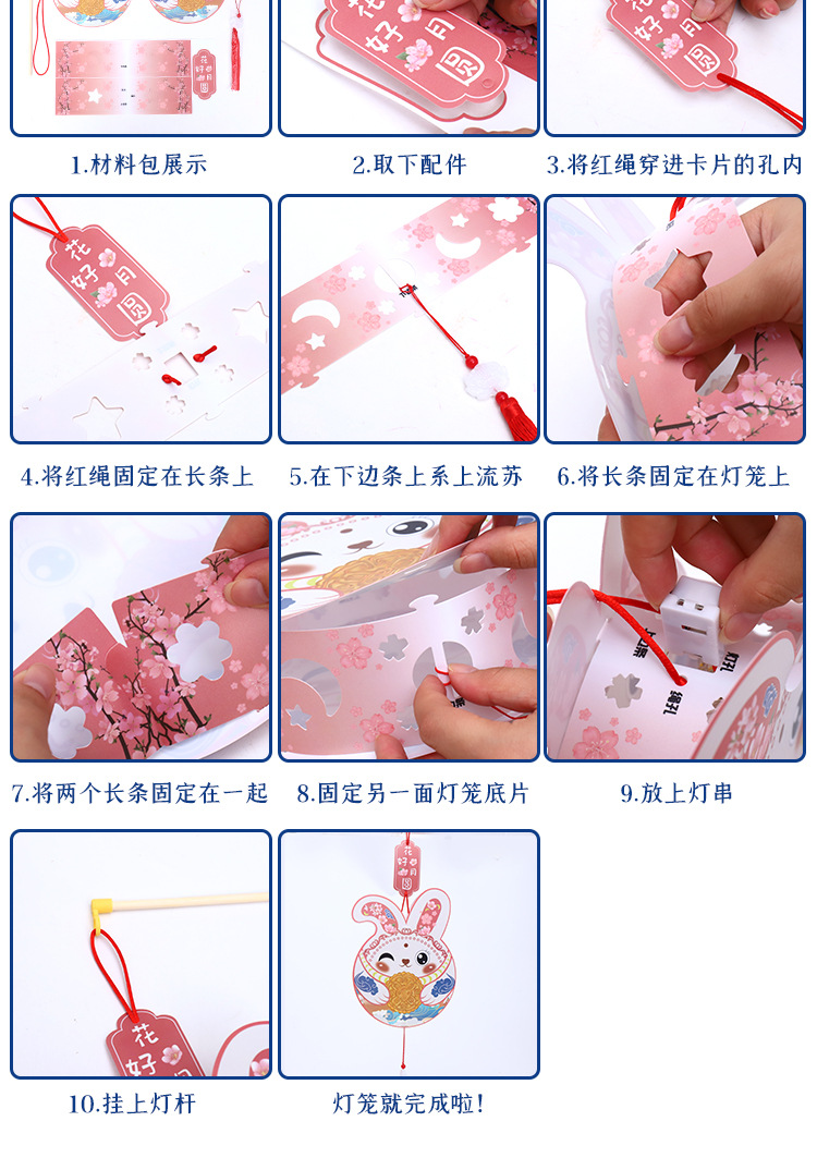 moon cake rabbit light pole + lighting chain (3 lighting modes)