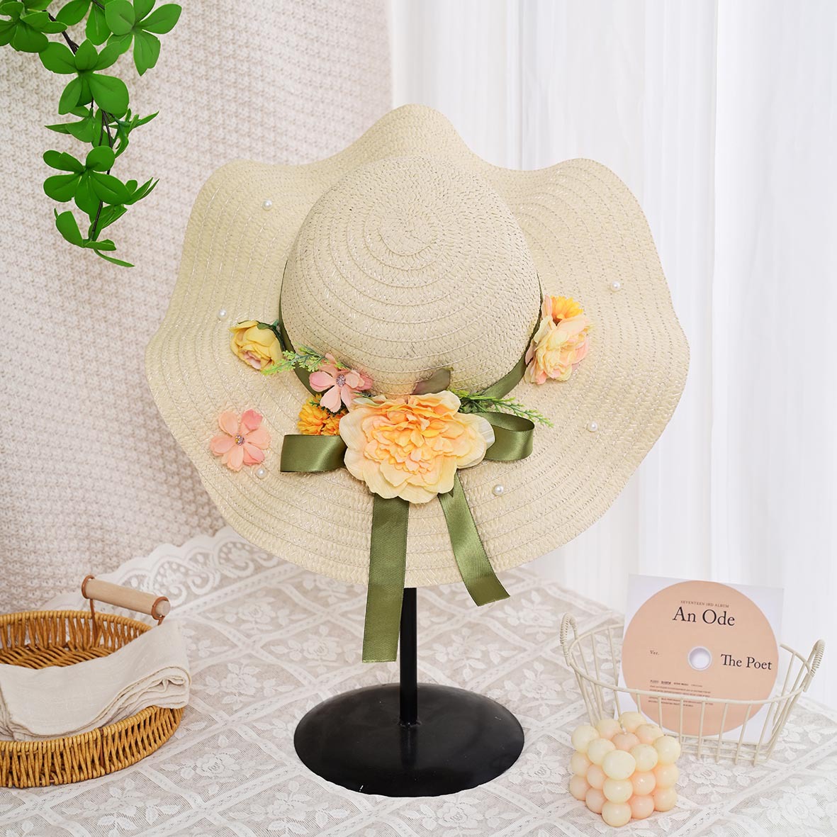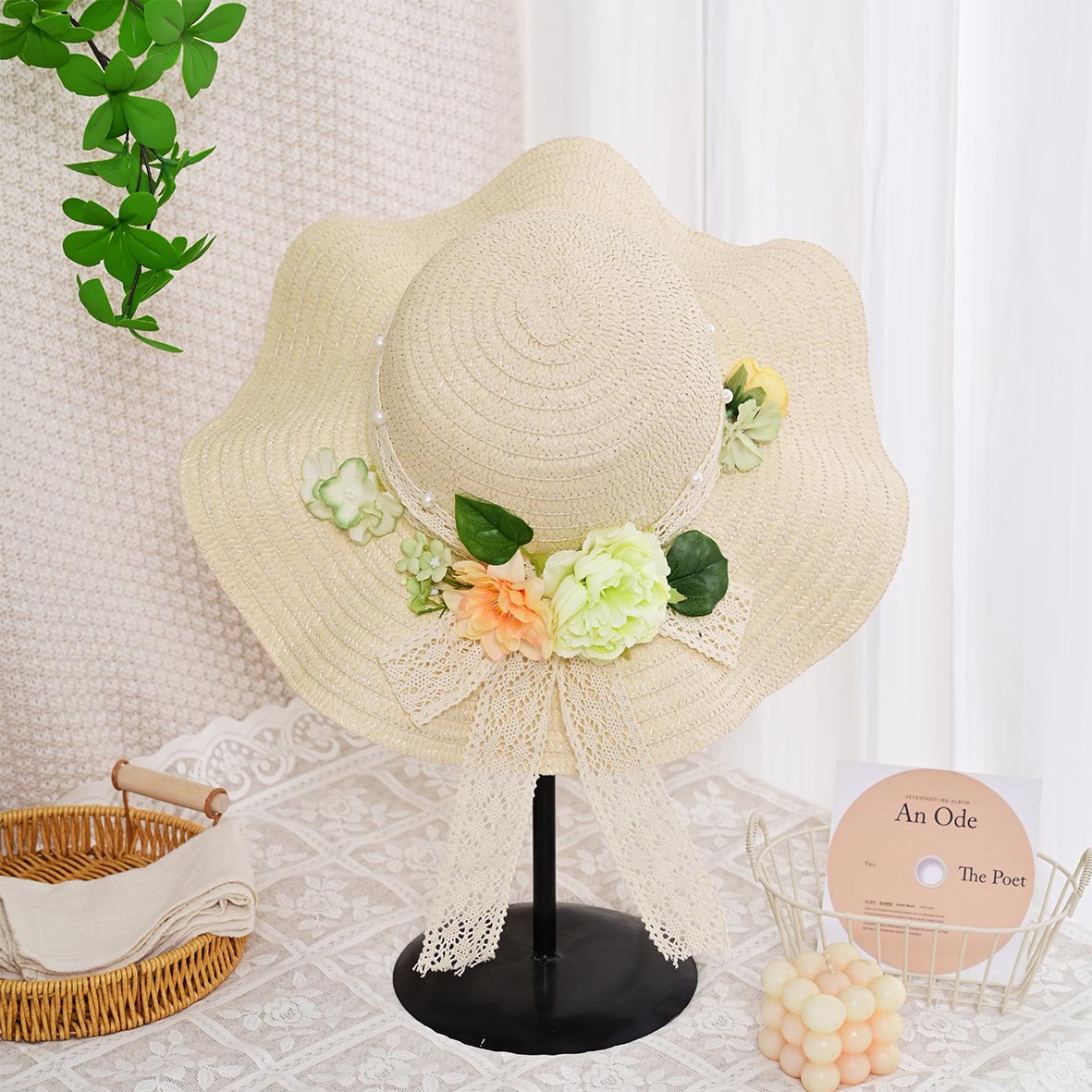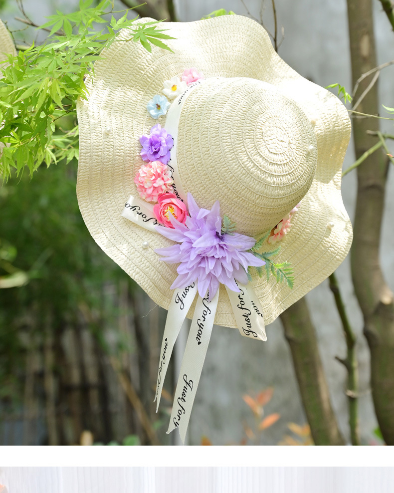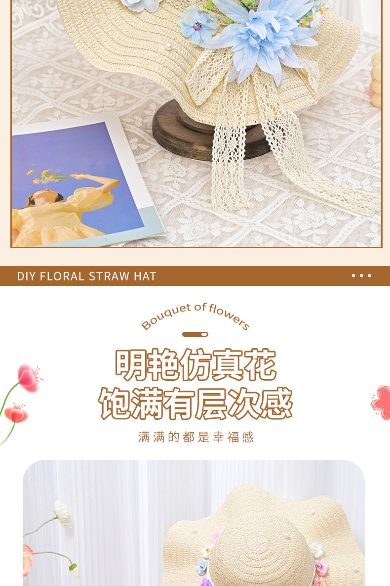 adult floral straw hat material package warm sun blooming