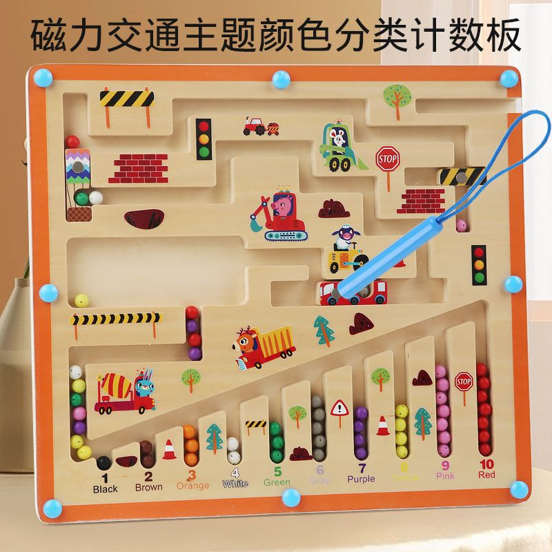 Color recognition teaching aids, digital classification, magnetic labyrinth, Montessori early education for children, magnetic writing, bead counting board
