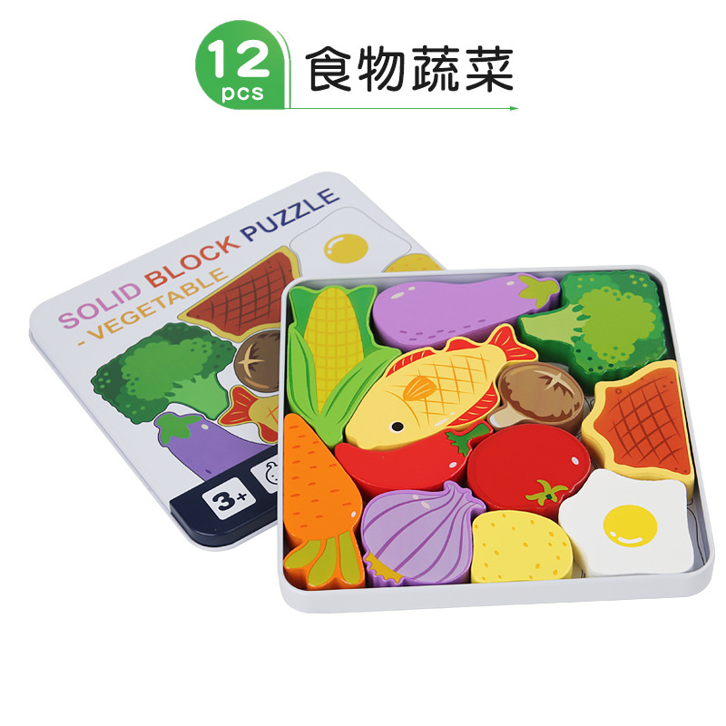 Cross-border new 3D puzzle building blocks for children's intelligence animal transportation fruit cognitive wood toys wholesale