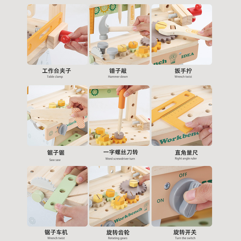 New Wooden Simulation Disassembly and Assembly Tool Table for Children's Playhouse, Wooden Repair Tool Station, Experience Store Tools and Toys