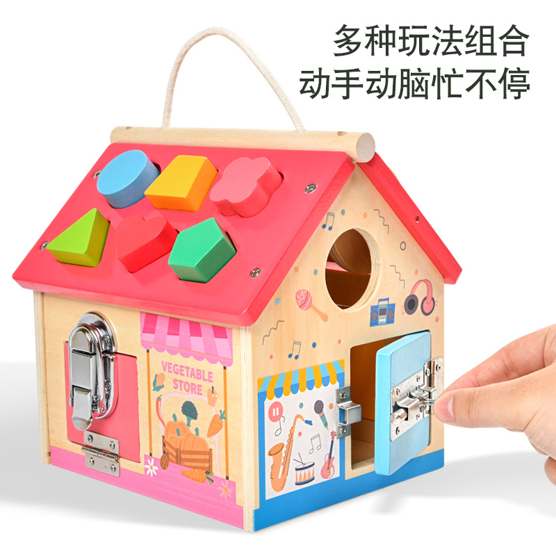 Cross-border new products wooden children's early education Montessori busy house unlocking box multi-functional matching cognitive toys