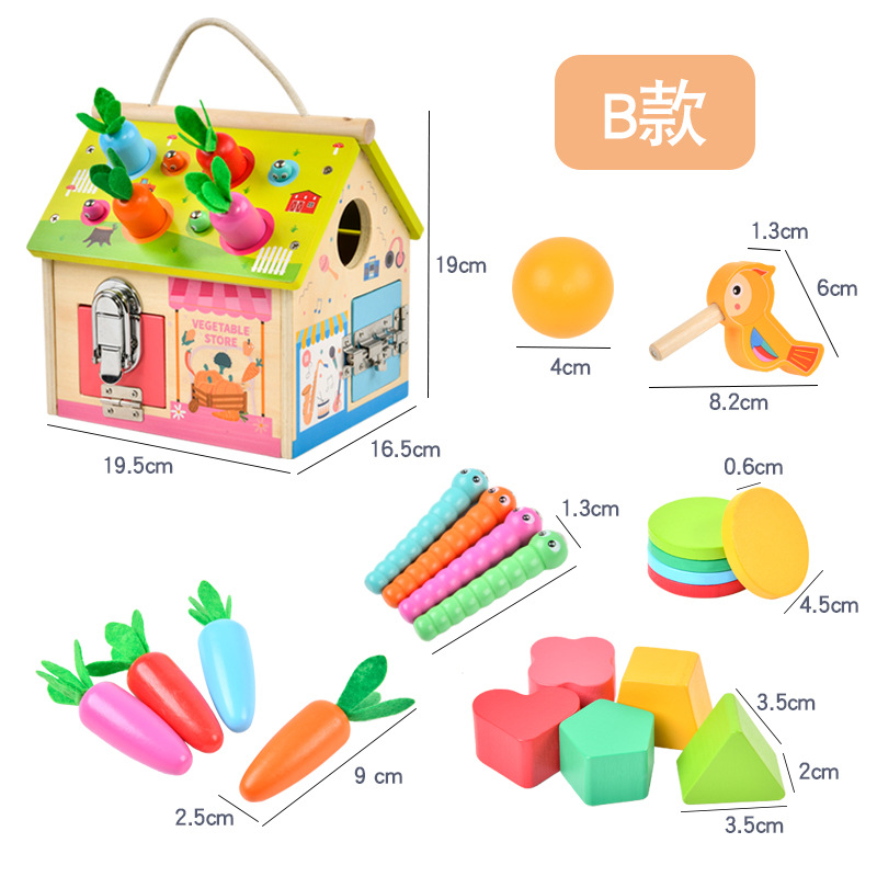 Multifunctional Montessori coin-operated box shape pull the radish catch the insect open the lock intelligence busy house children's early education intelligence toy