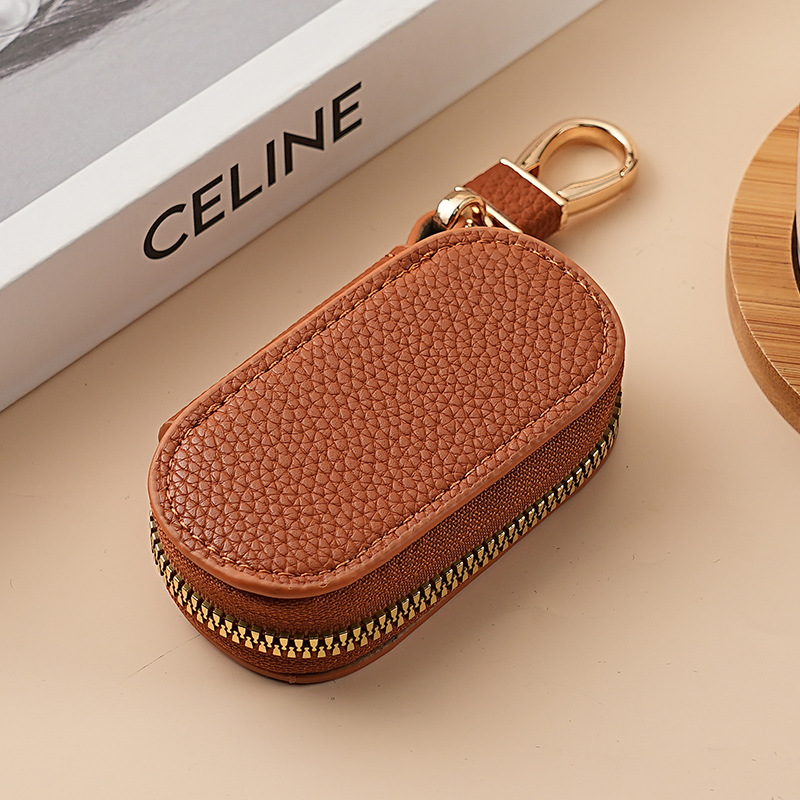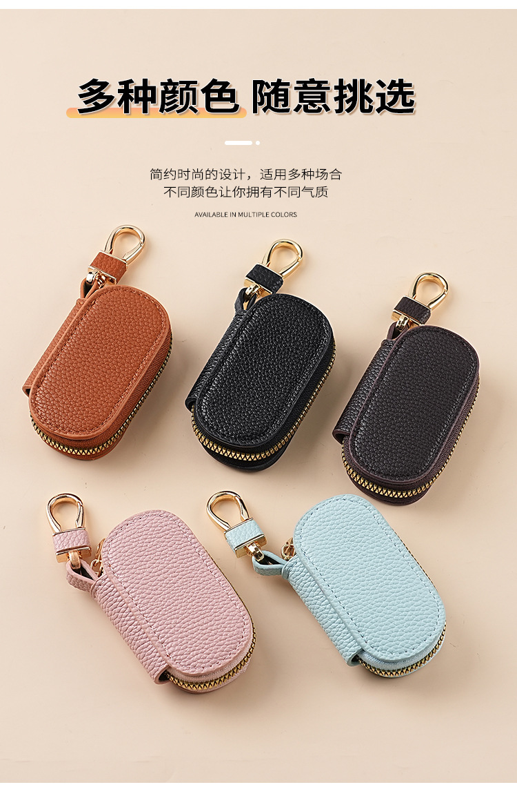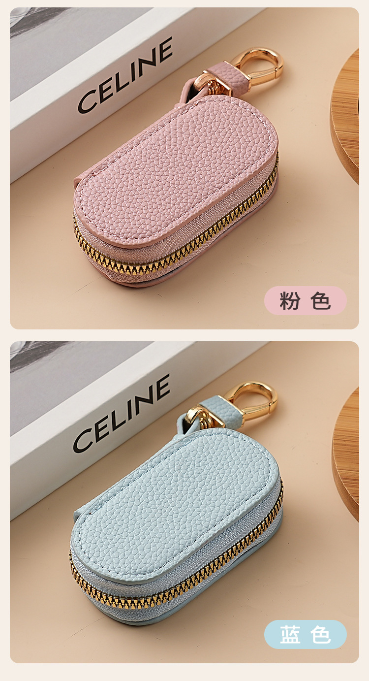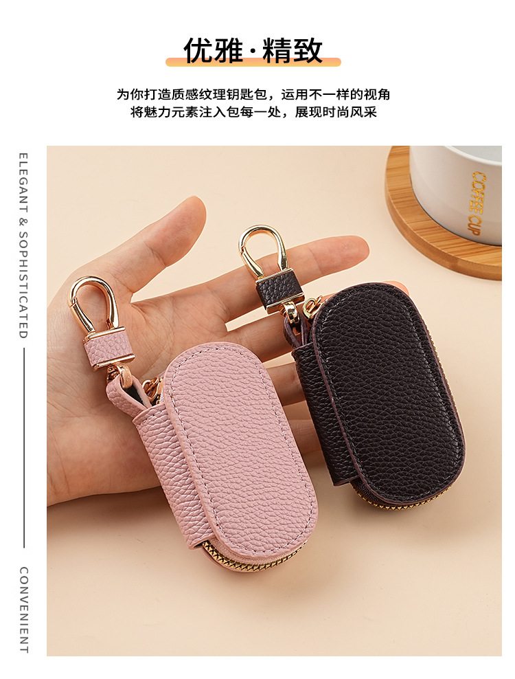 solid color simple lychee pattern women's lychee pattern key case car universal large capacity lightweight home key case men