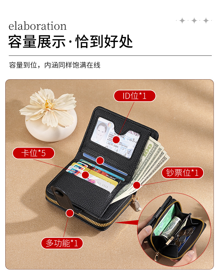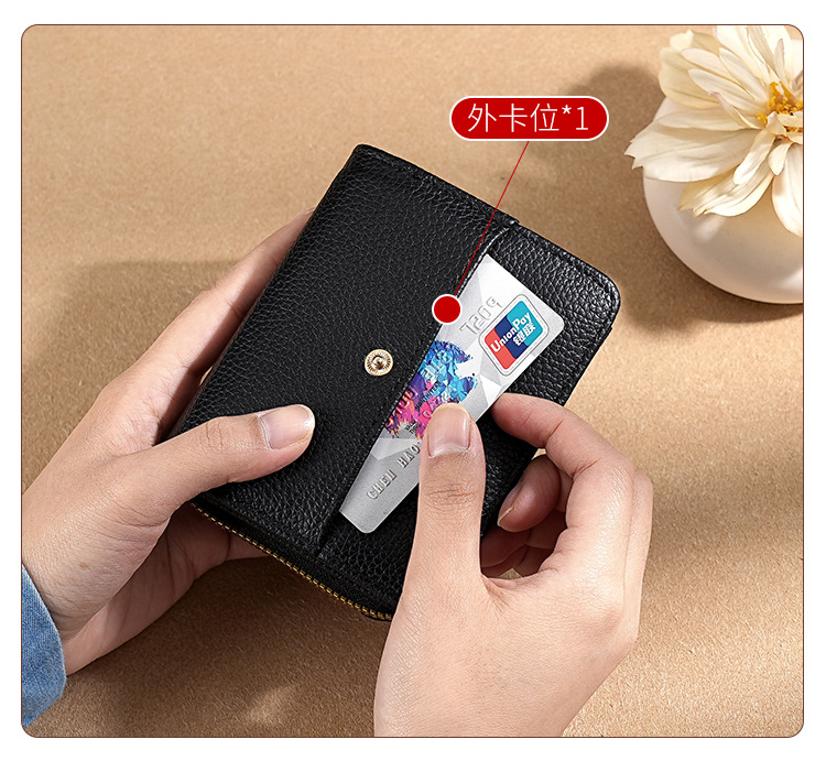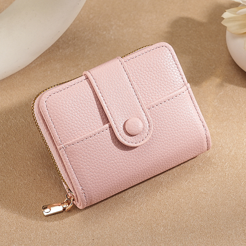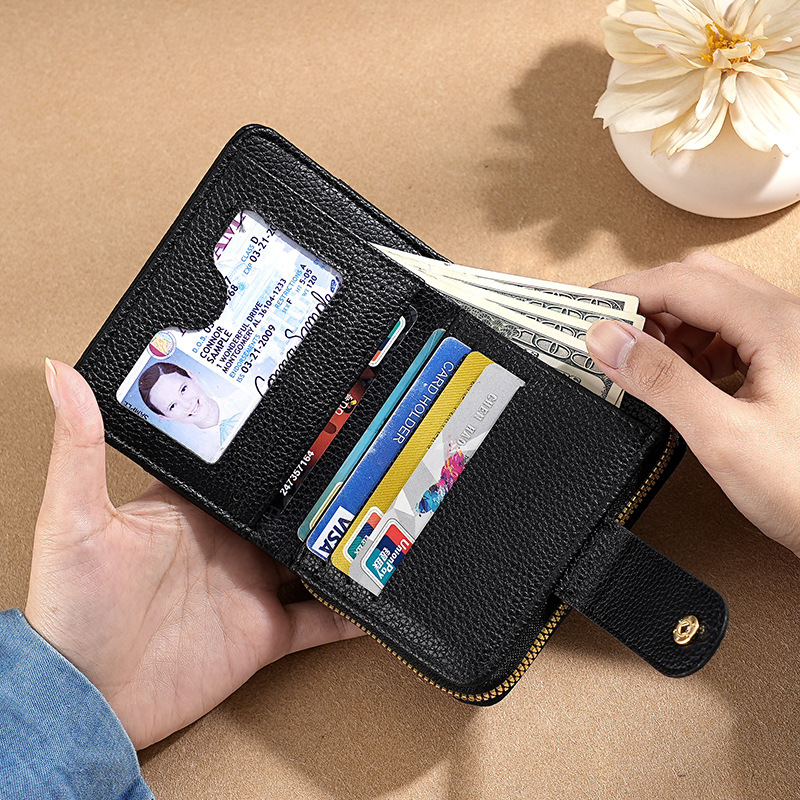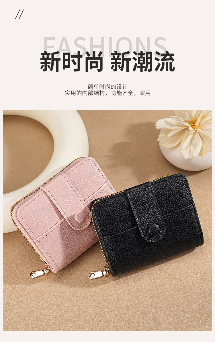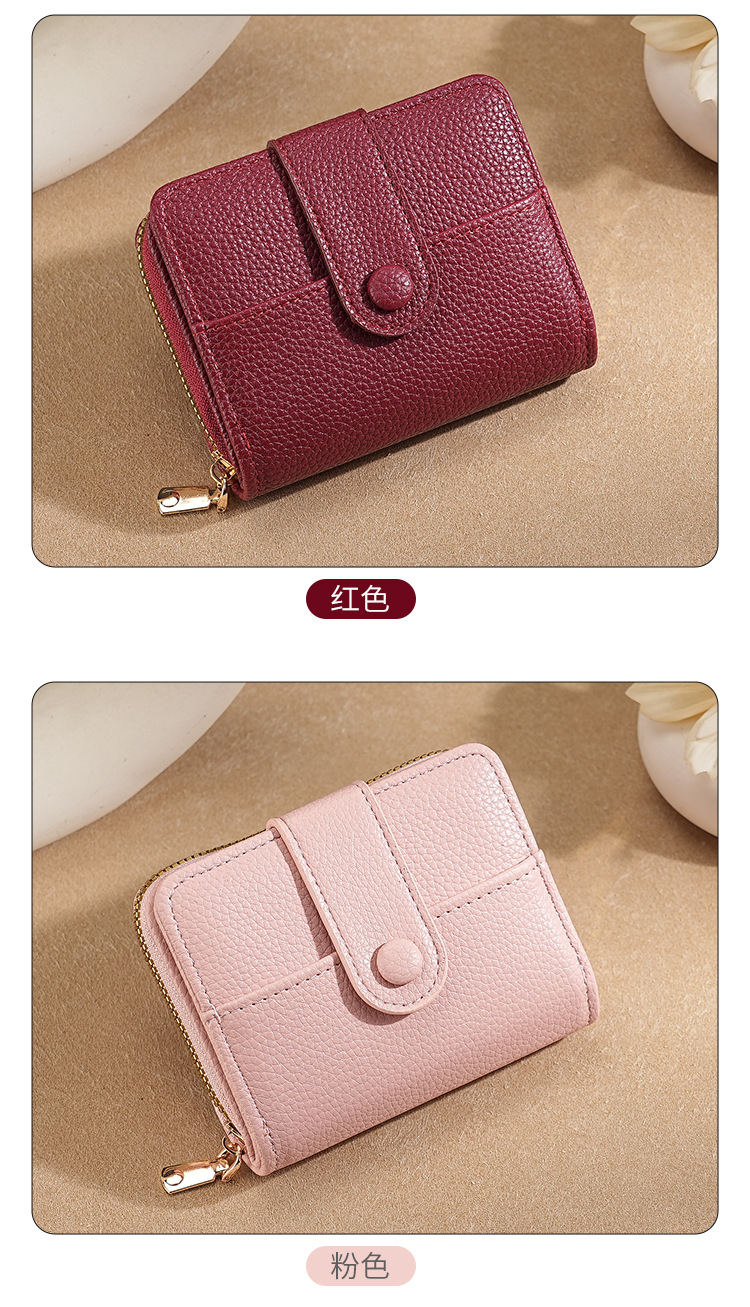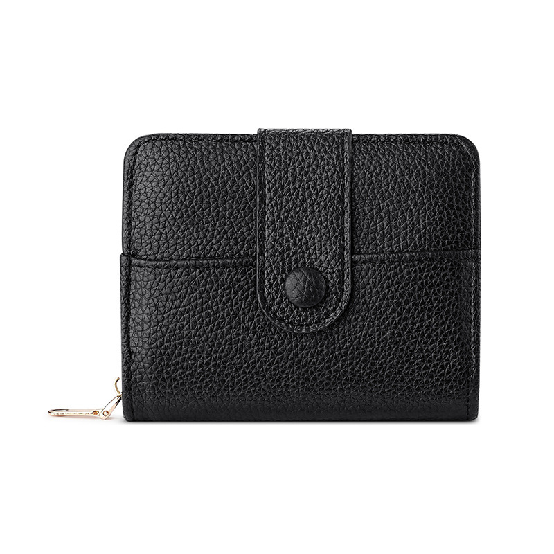 new cross-border women's large capacity short wallet solid color litchi pattern women's multi card slots wallet wallet