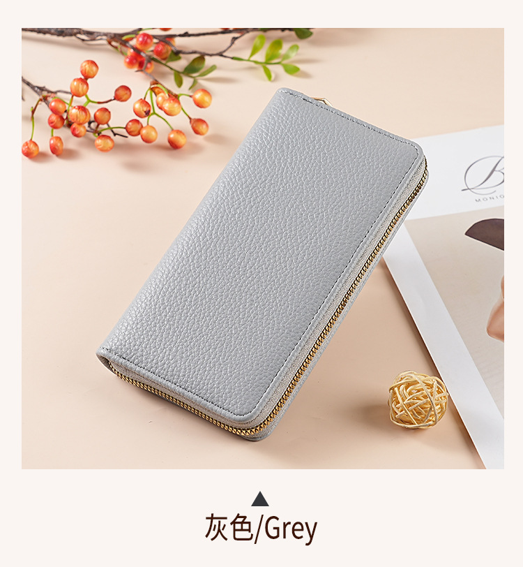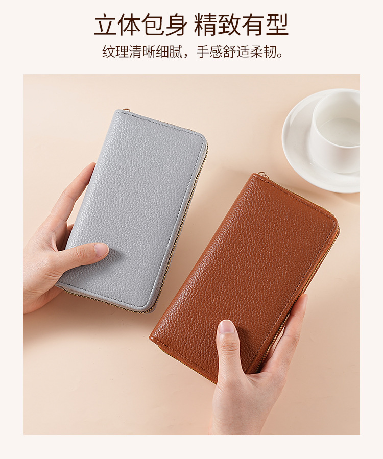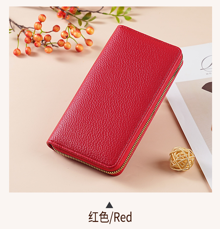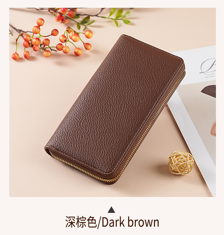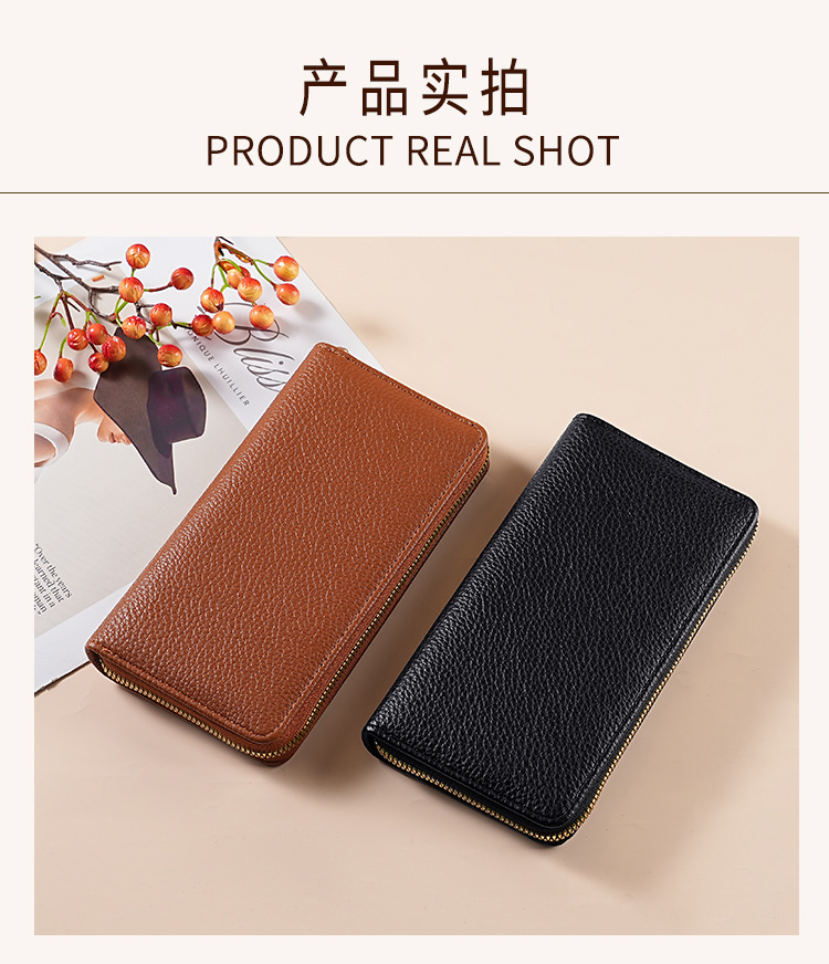 cross-border wallet women's authentic leather tactile feel long litchi pattern soft leather wallet large-capacity wallet women's purse
